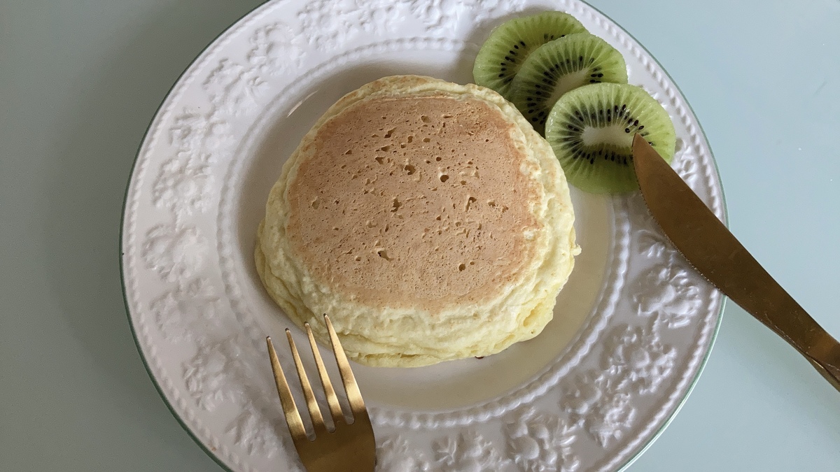 焼く時は普通のホットケーキと同じように一度温めたフライパンを1度布巾で冷ますのが綺麗に焼くコツです。