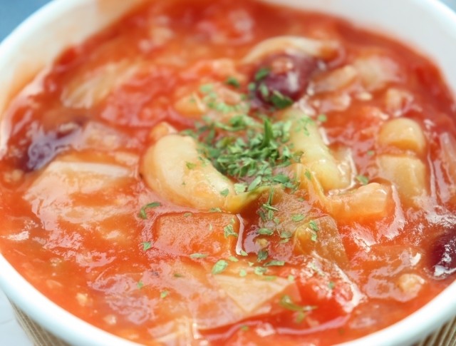 トマトが入ると旨味が増すので、トマトを入れることで満足度が格段にアップ。トマトの旨味成分である「グルタミン酸」が味を格上げし、食べ過ぎを防いでくれます。