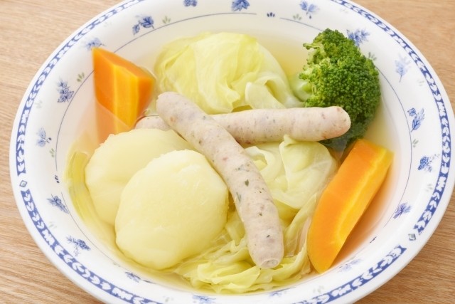 ポトフには、ベーコンやウインナー、少量の鶏肉といった肉類が入るため、だしがしっかりと出て、旨味成分が豊富なスープになります。