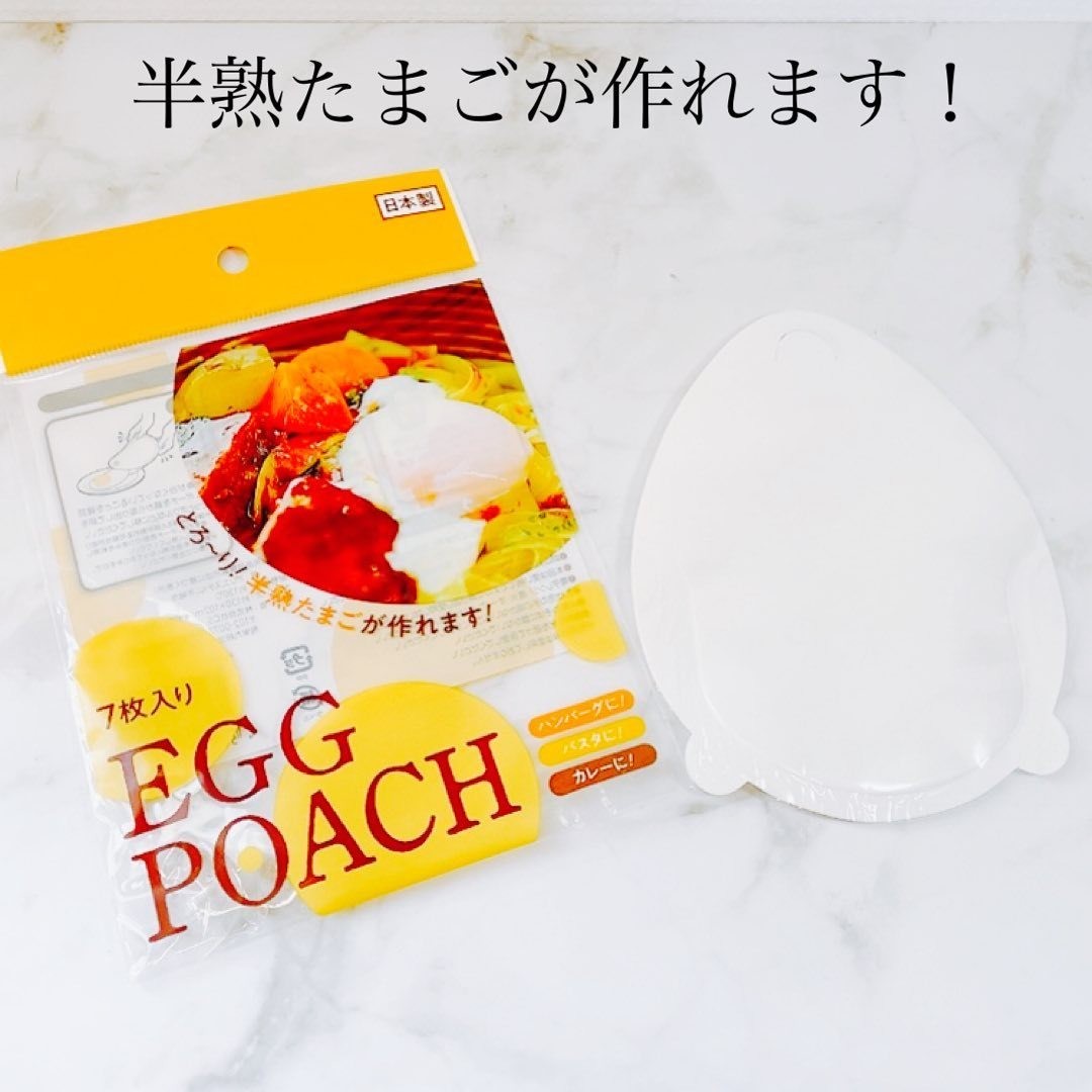 こちらは「半熟たまごポーチ」です。使い方はポーチの中にたまごを割り入れて、中火以下で約4分加熱するだけ。菜箸を通す穴があいていて、菜箸からぶら下げた状態で加熱できるんですよ。