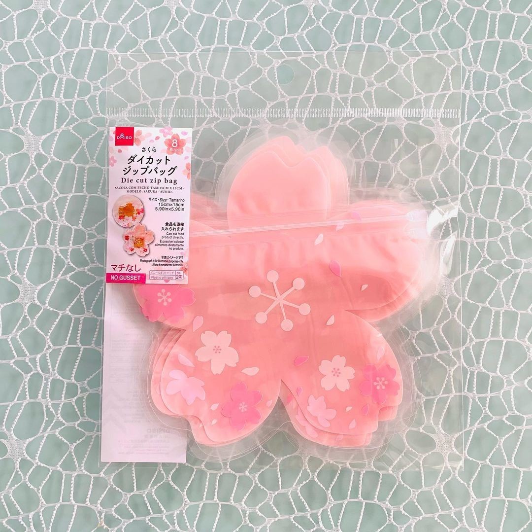 ダイカットジップバッグ(100円)はその名の通り、桜の花そのもののようなデザイン。