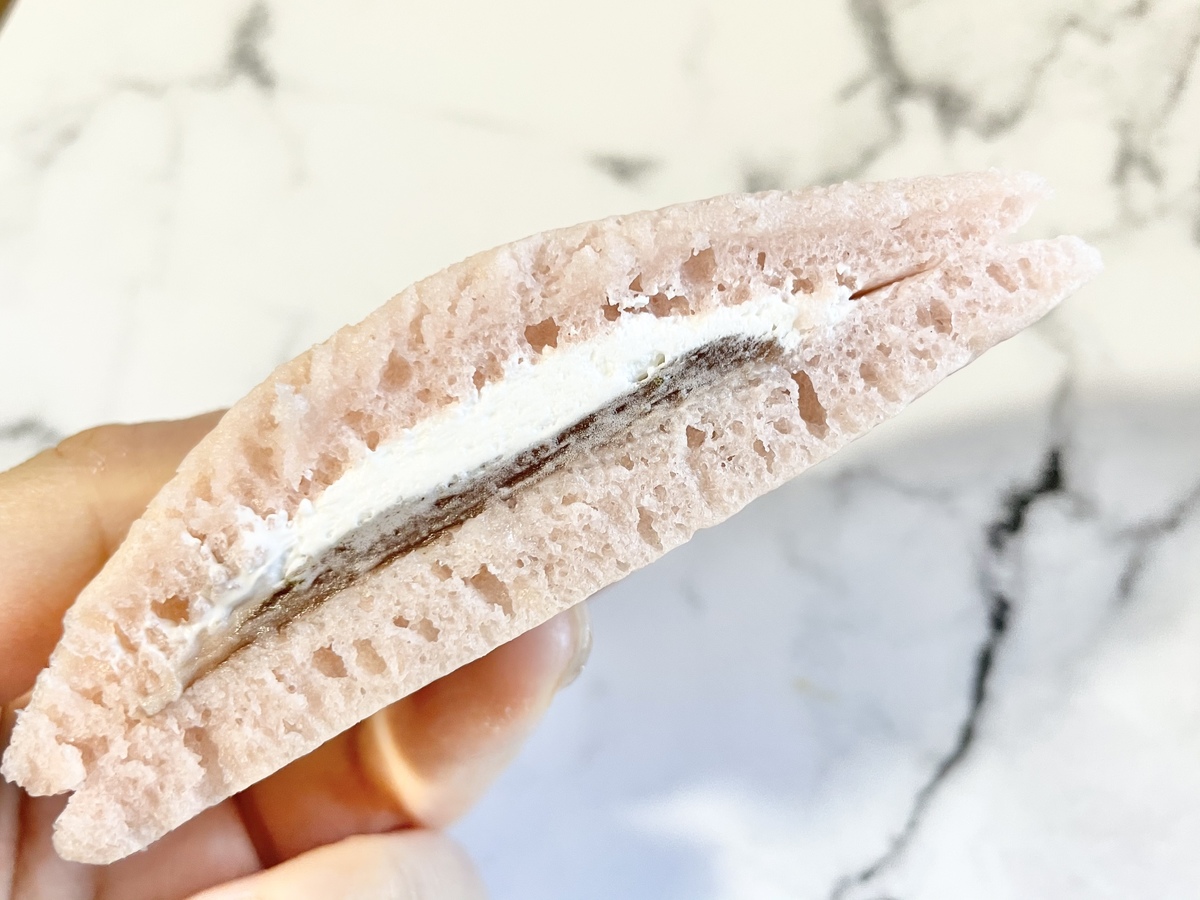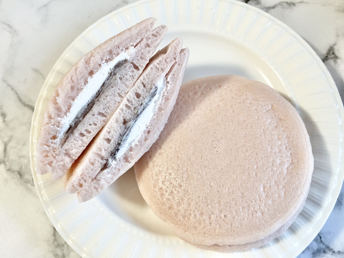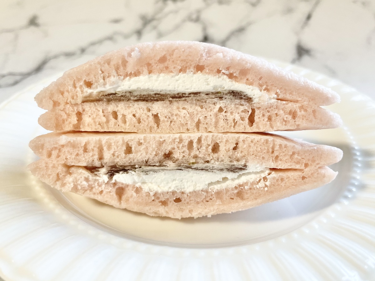 桜もちをイメージしたもちっとした食感の生地に、桜餡とミルクホイップクリームが挟まれています。