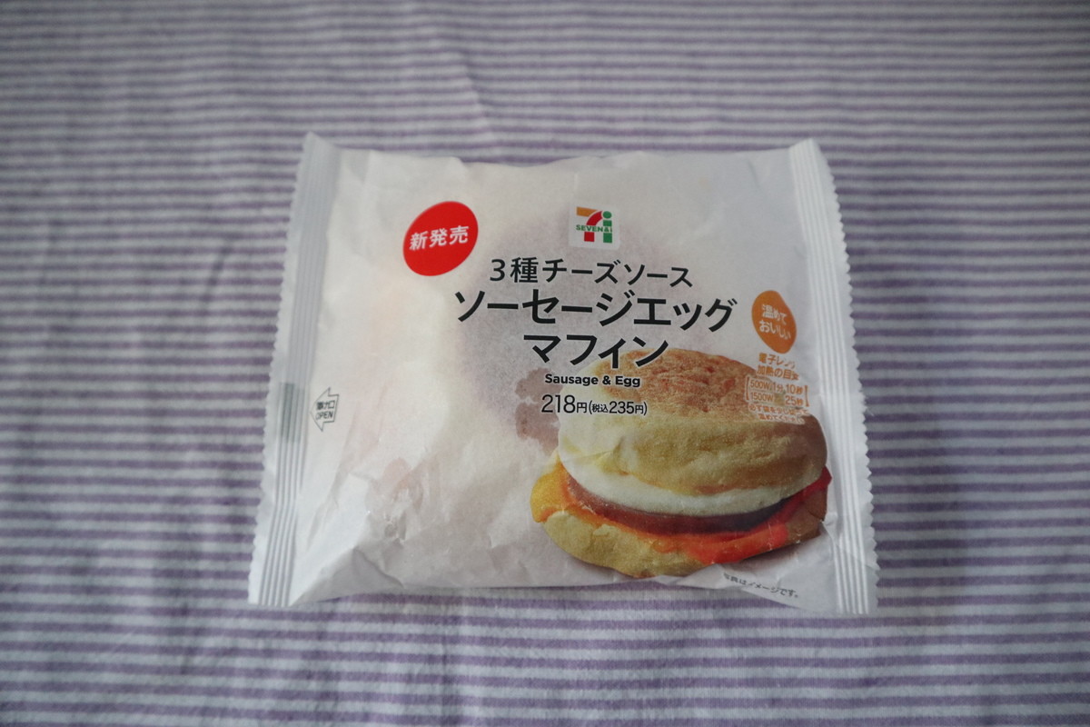 - セブンイレブン《3種チーズソースソーセージエッグマフィン》218円(税込235円)