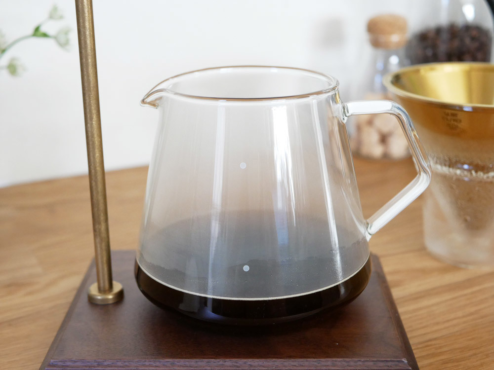 直線のフォルムが印象的なサーバーは、コーヒーが落ちる様子を目で楽しめます。耐熱ガラスなので食洗機や電子レンジもOK。温めなおすのに便利ですね。
