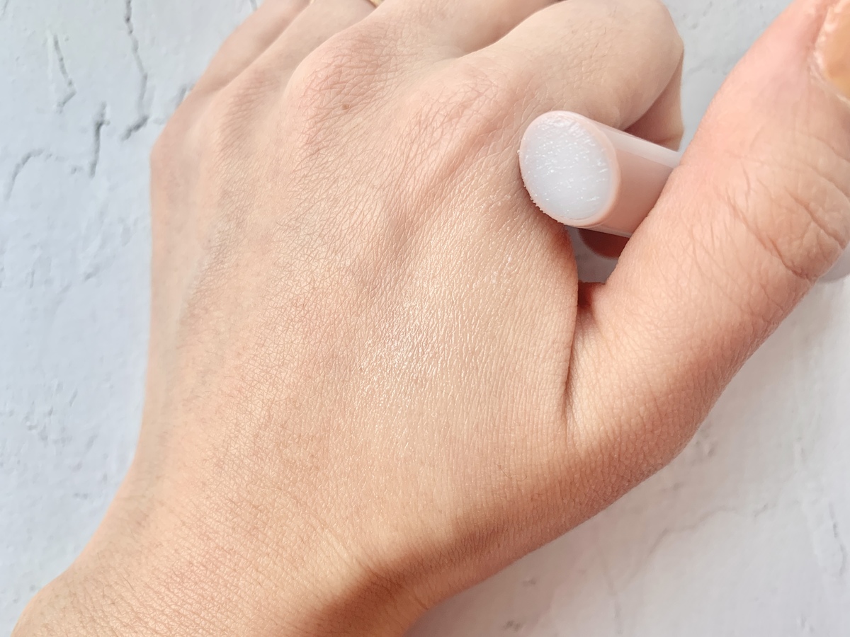 塗るだけでしっかりとくちびるエステができる優れもの。リップカラーを重ねて使うときは、ティッシュオフして表面を整えるときれいにリップカラーがのりますよ。