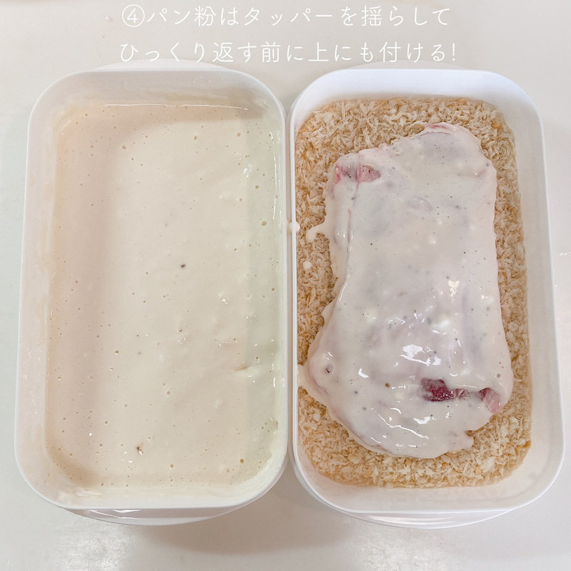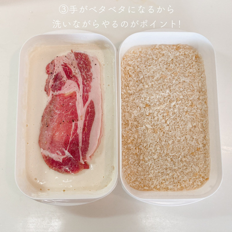 3.2に水溶き小麦粉→パン粉の順に付ける。