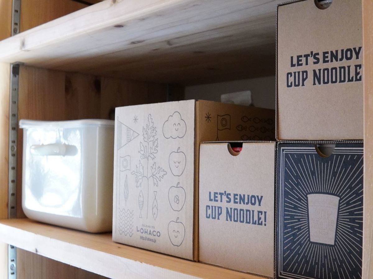 LOHACO限定のカップヌードル専用ストックBOXが4個につき1つついています。