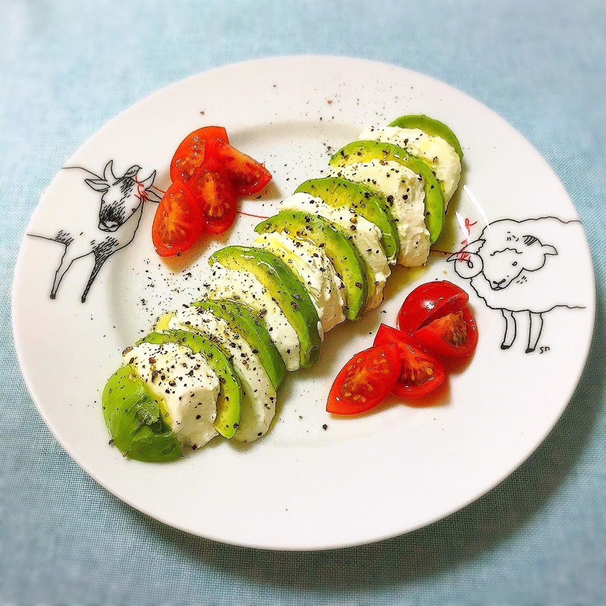 - 水切りヨーグルトとアボカドのカプレーゼ