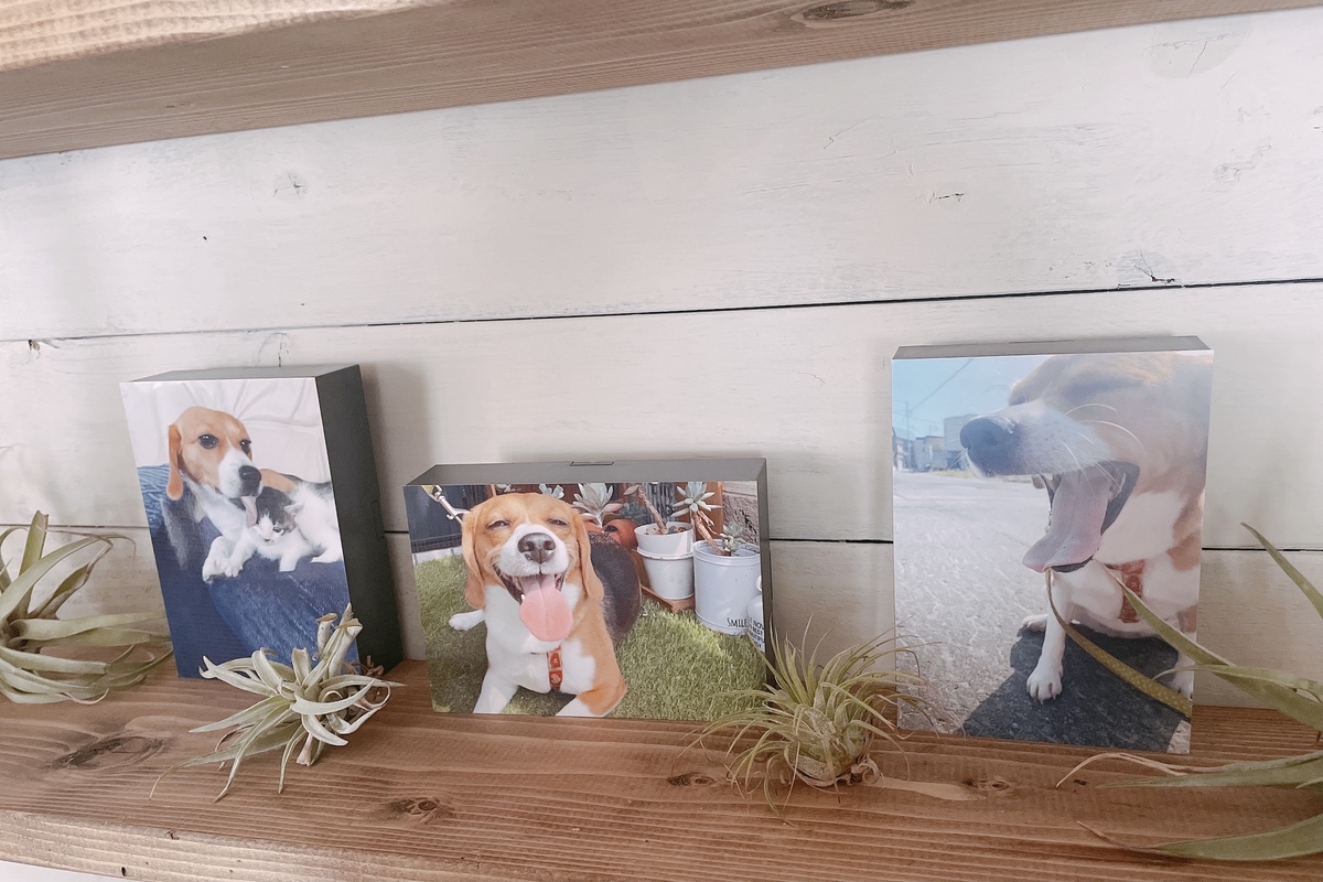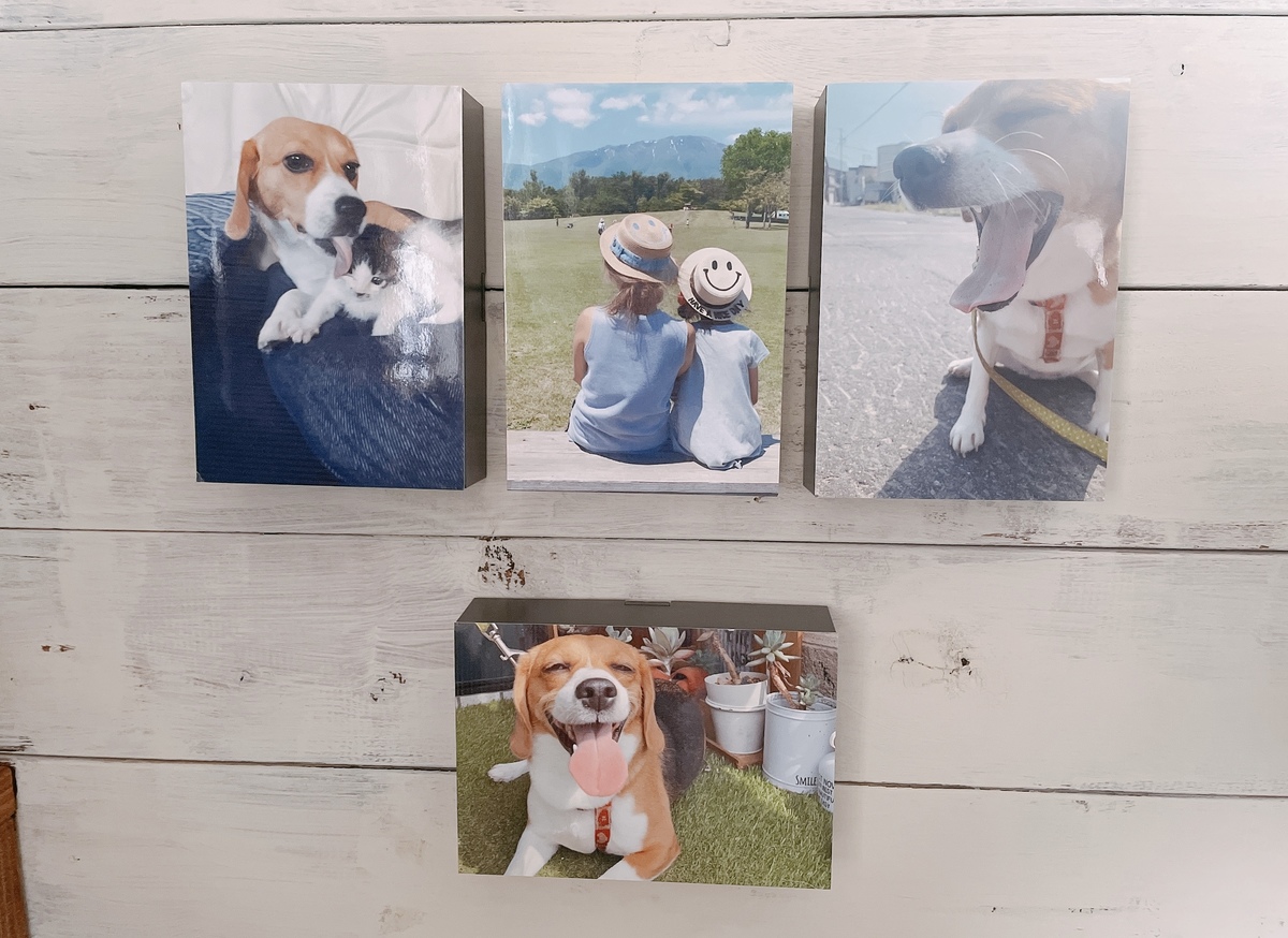 縦と横の写真を混ぜて飾ってみました。ファブリックパネルのように厚みがあるので、立体感があっていつものフォトフレームとは一味違うレイアウトが楽しめそうです。