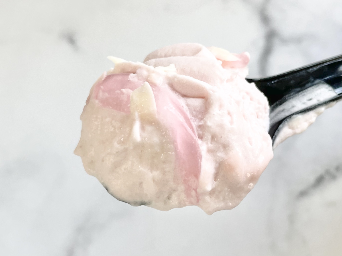 さくらソースとホワイトチョコフレークもしっかりとかかっていて、食欲をそそります。