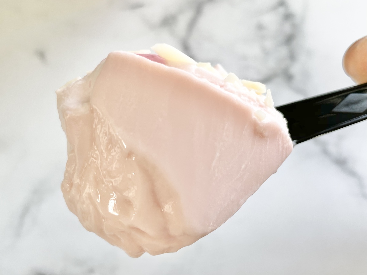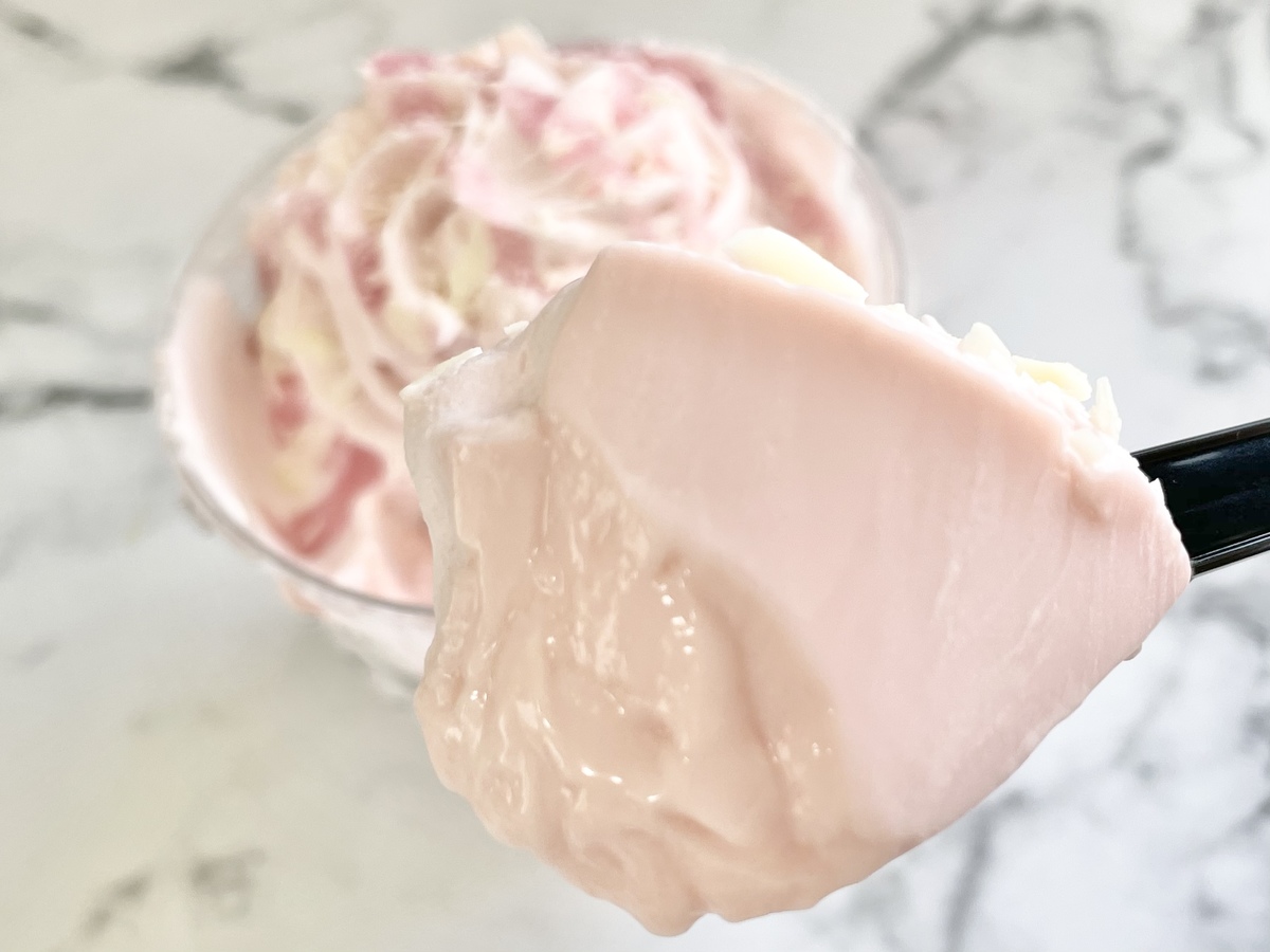 甘酸っぱいさくらソースとホワイトチョコフレークが、サクサクとアクセントになっています。