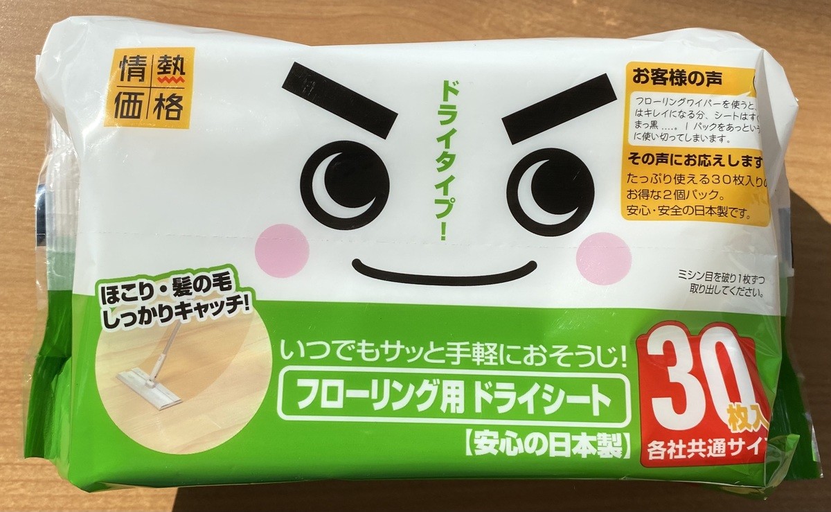 30枚入りで85円(税込)と100均よりもお得。フローリングシートはドライ派という方にもおすすめしたい商品です。