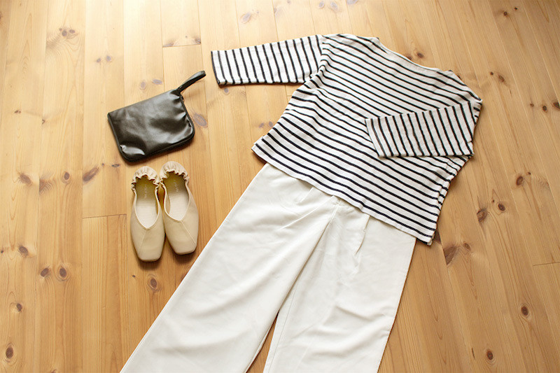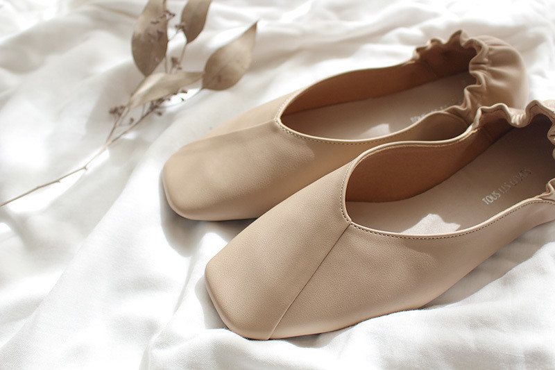 パンプスではトレンドの流れがきているスクエアトゥも、携帯シューズではまだまだ少数派。室内でも旬をおさえたコーデを楽しめるのは嬉しいところです。