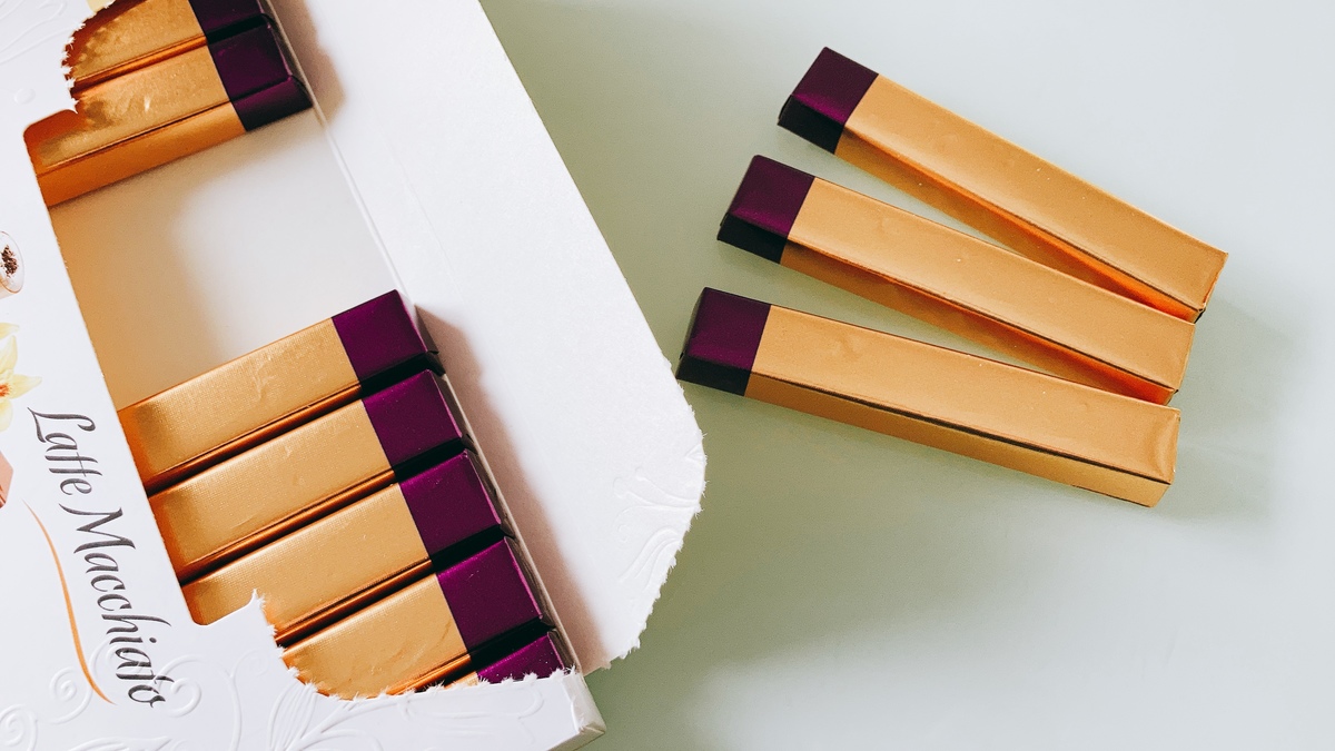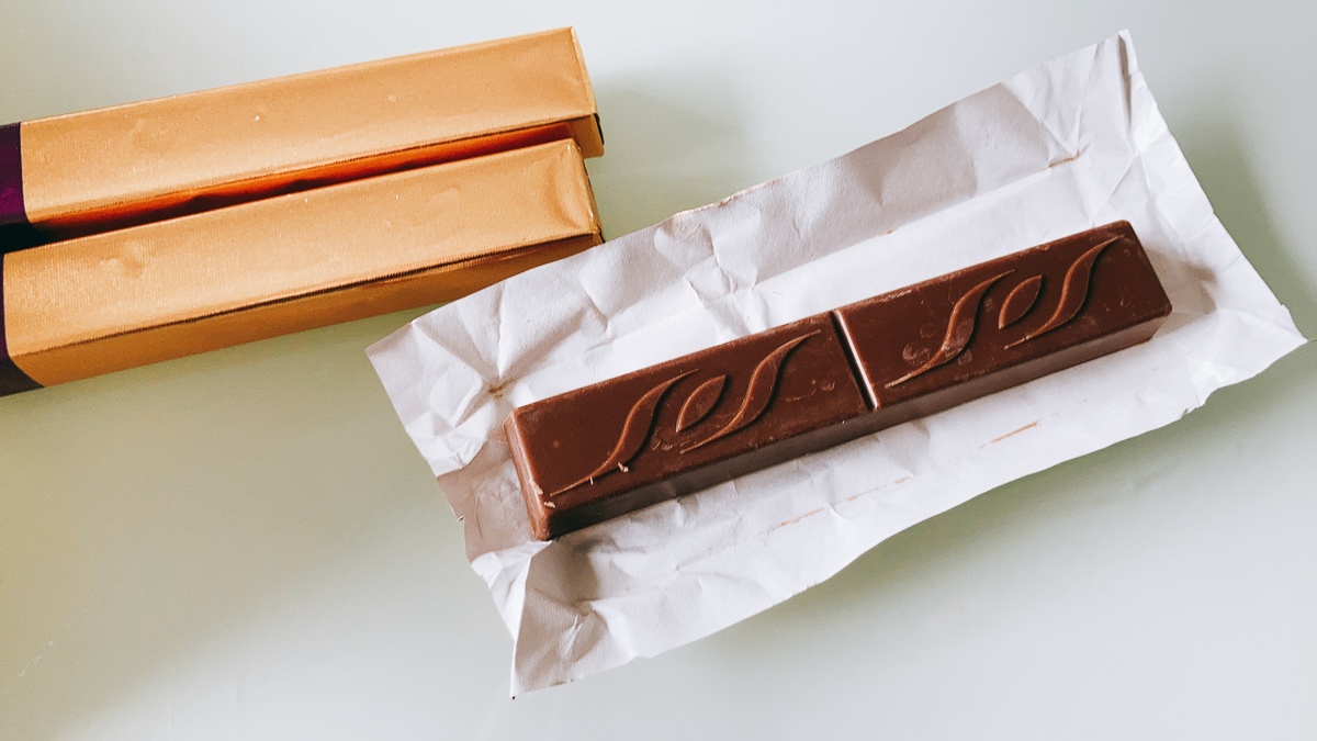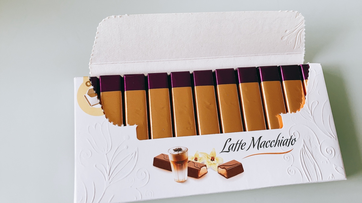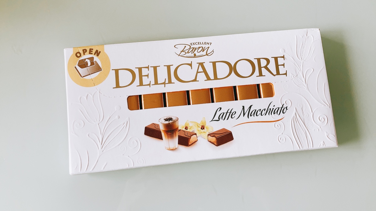 こちらはポーランド直輸入のラテマキアートチョコバー178円(税抜)です。名前は「DELICADORE」。