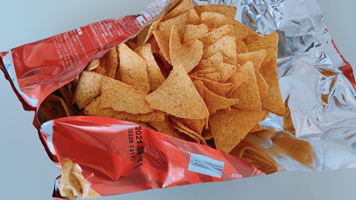美味しい!メキシカンのレストランで出てくるトルティーヤチップスまさにそのものです。子どもでも食べれるくらいの若干ピリリとするチリ味のバランスもGOOD。もちろんそのままでも美味しいのですがお勧めはやっぱりこれ。