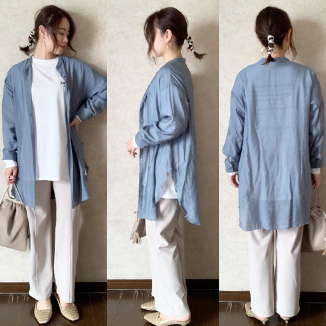 【クリーム】ロングシャツと着こなすリラクシーコーデ
