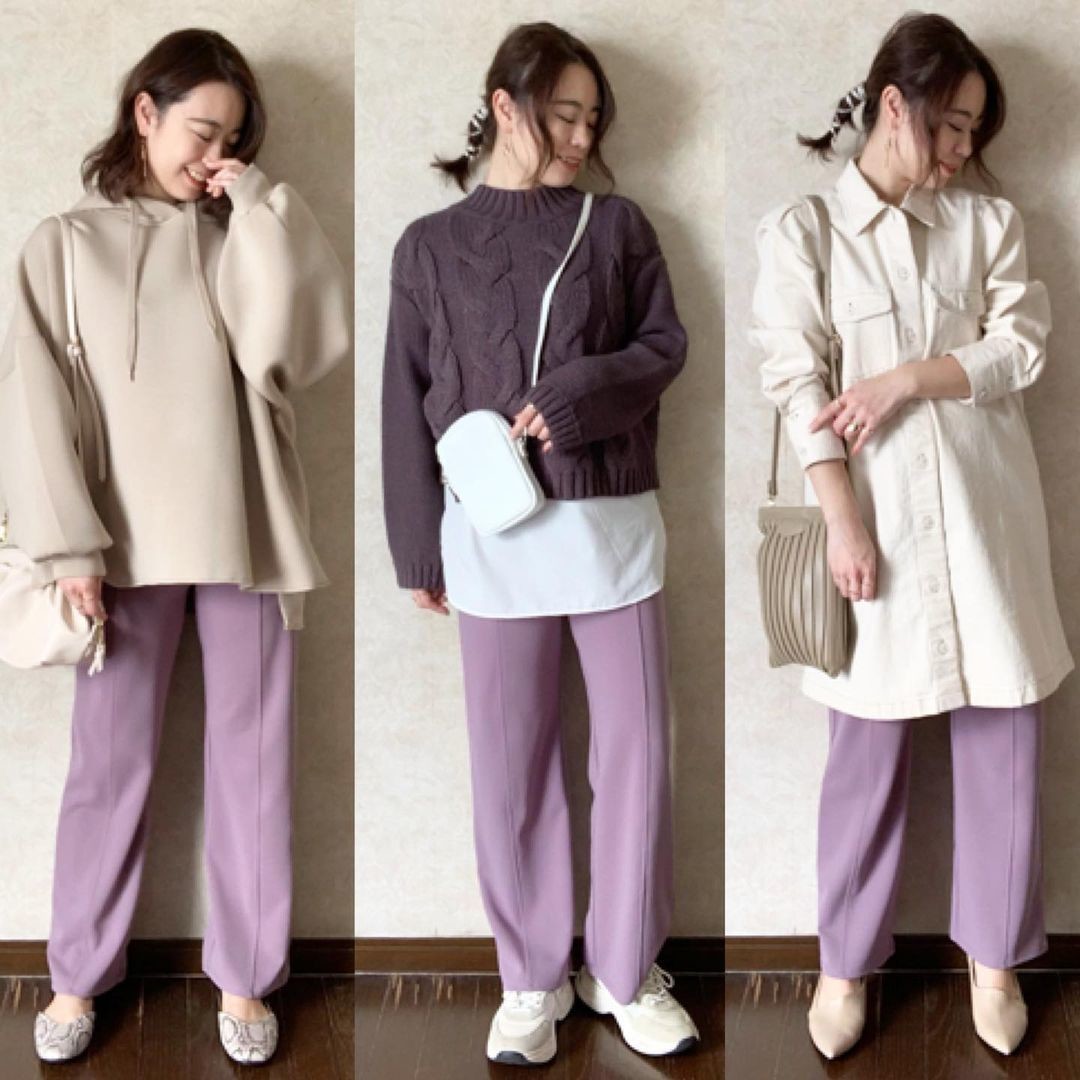 【ラベンダー】カジュアル&きれいめ着回しコーデ②