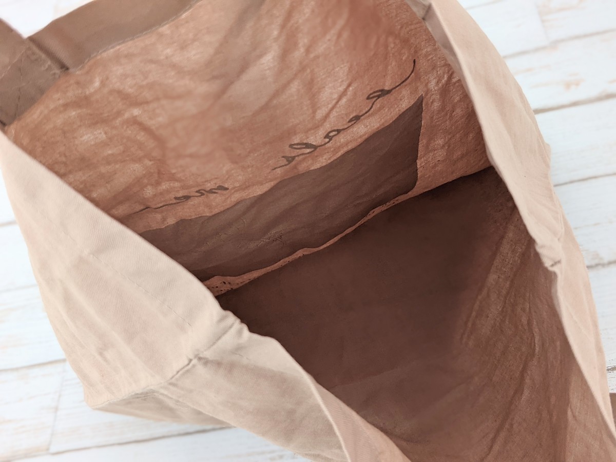 トートバッグに使われている生地は薄手で軽い素材です。 特殊なシワ加工が施されていて、大人な雰囲気でとっても素敵♪ ブラウンの他にベージュもありますよ。