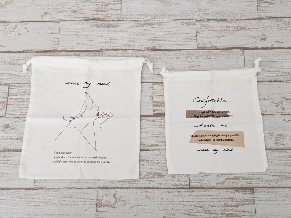 続いて紹介するのは、「my room.」シリーズの巾着2個セット。 シンプルかつ洗練されたデザインに仕上がっています。