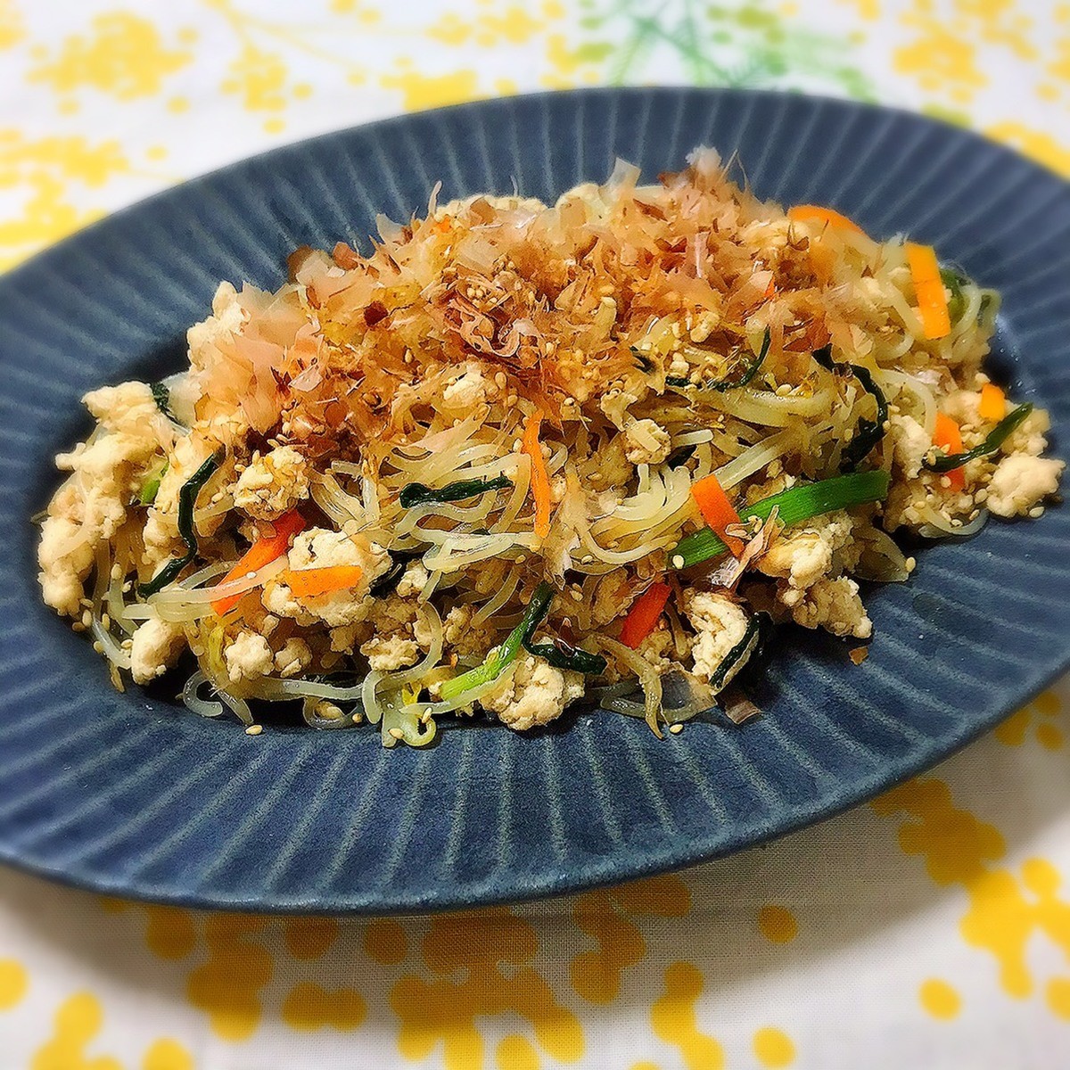 - 糸こんにゃくと鶏ひき肉のそうめんちゃんぷる風