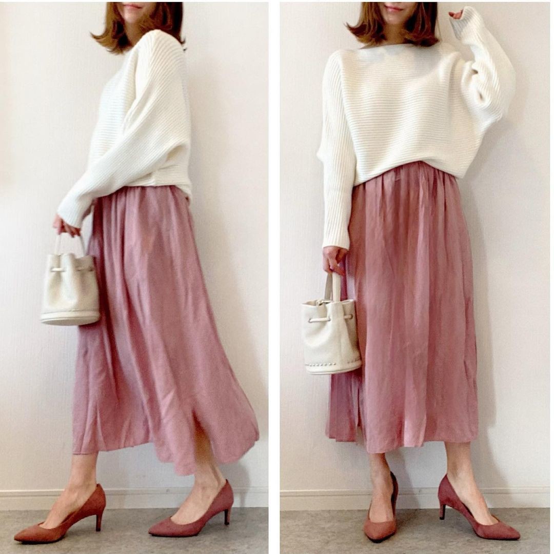 着回し力抜群【ユニクロ】「シャイニーロングスカート」でトレンド先取り♡大人可愛い春コーデ