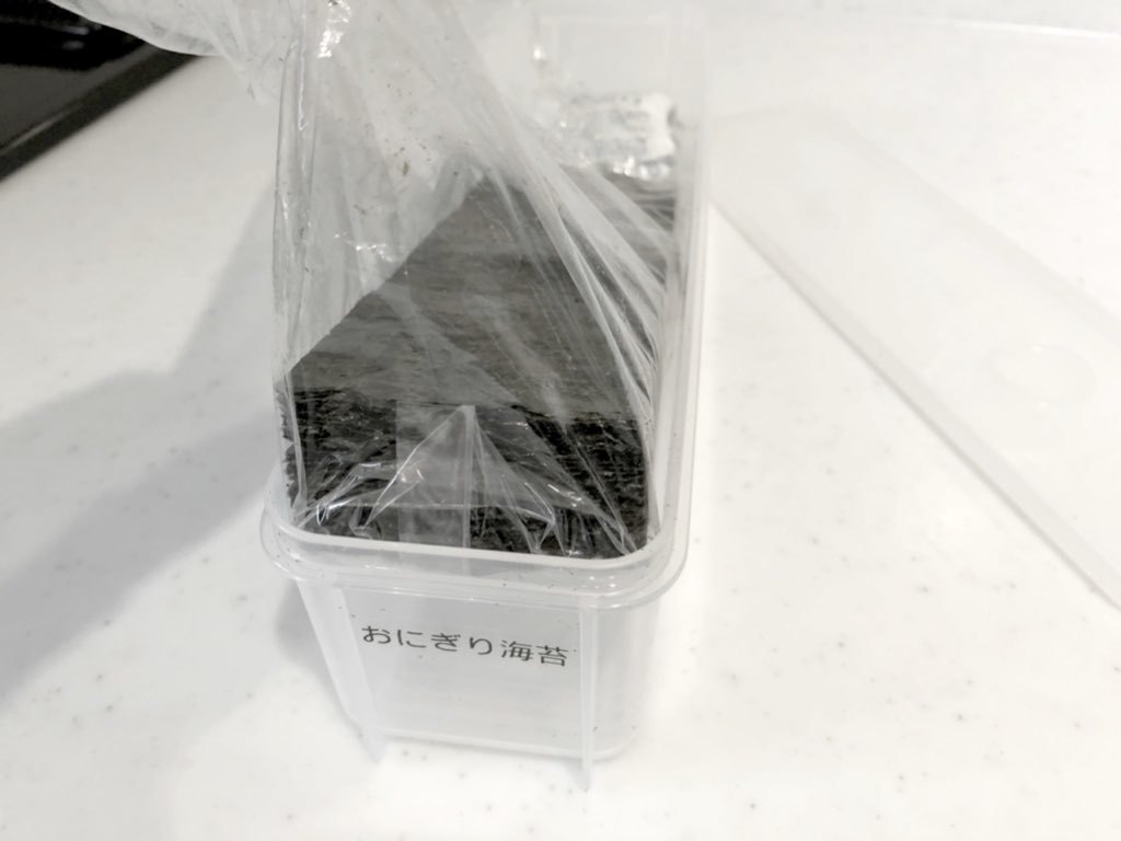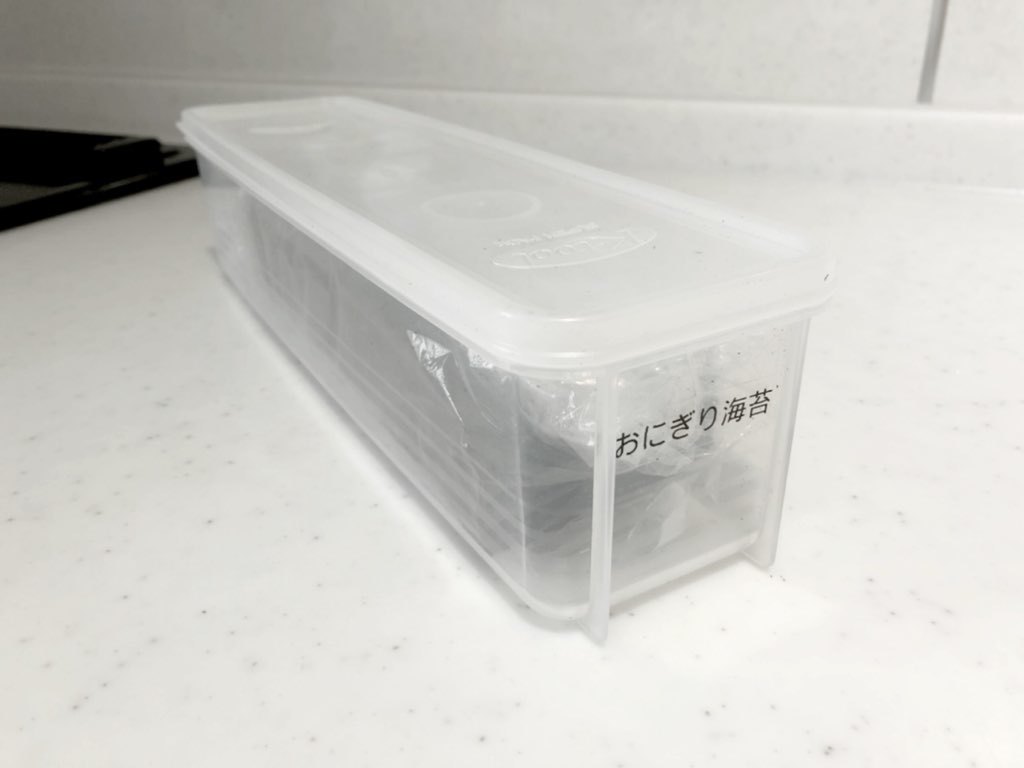 本来の使用用途はパスタに使うものなのですが、わが家ではこちらを3つ切りのおにぎり海苔の収納に使っています。
