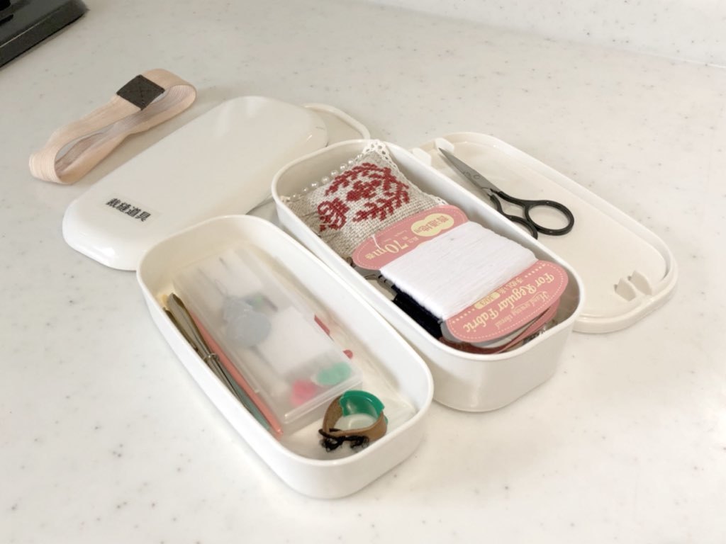1軍の裁縫道具を入れているのは、セリアで買ったお弁当箱です。