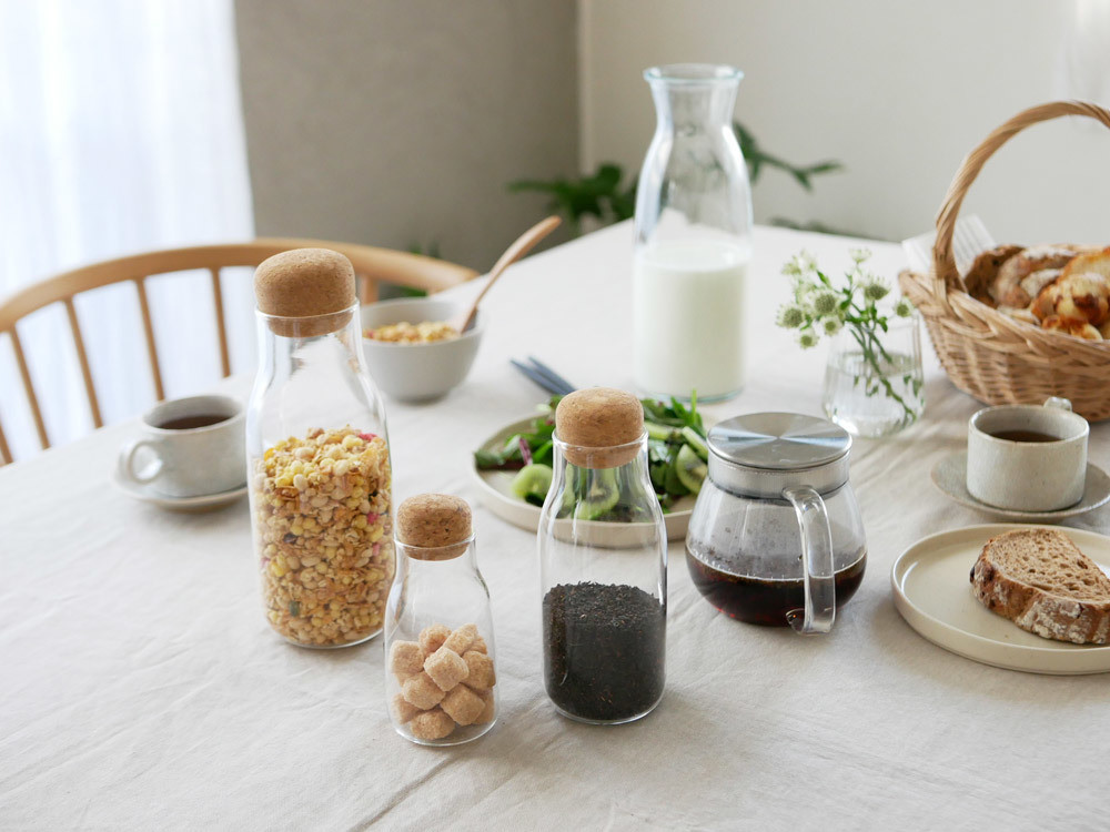 収納性を備えた、キッチンやテーブルでアクセントにもなる保存瓶「KINTO BOTTLIT キャニスター」。天然素材のコルクと丸みのある瓶が可愛らしく、インテリアに映えるアイテムをご紹介します。