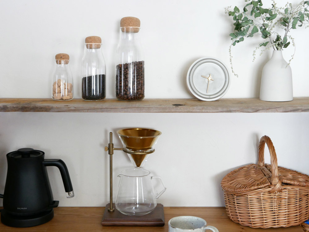 お気に入りの茶葉や、コーヒー豆などディスプレイするように飾ればお家カフェのよう。