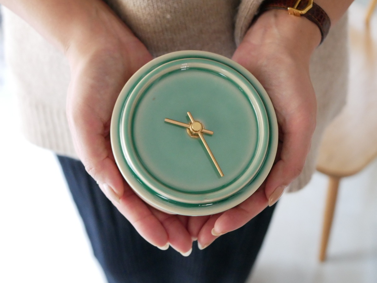 釉薬の微妙な色合いと質感のこだわりを詰め込んで作った「ミニクロック pot 」。