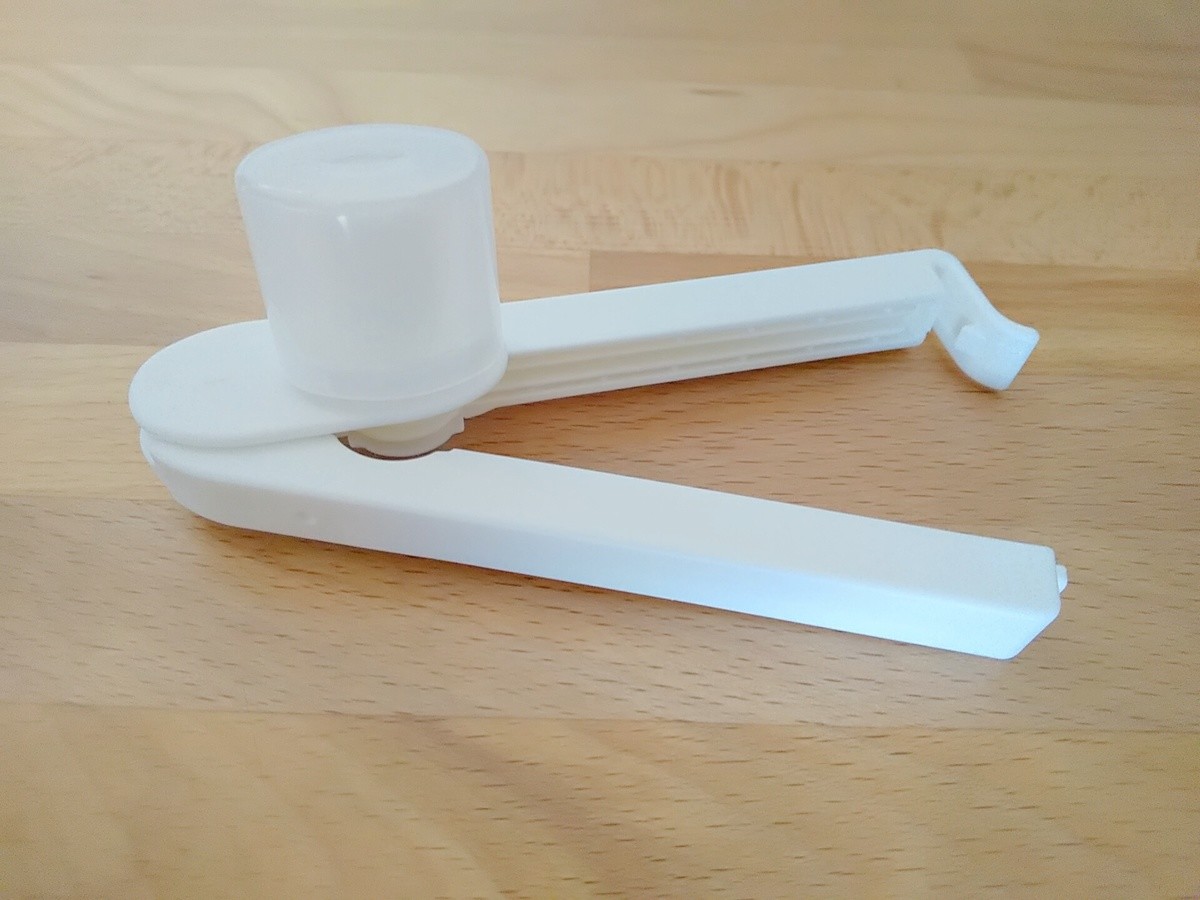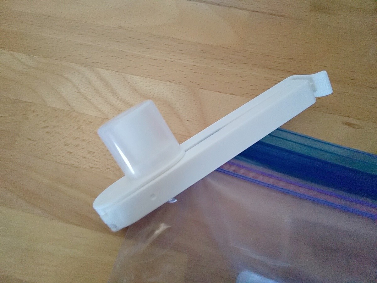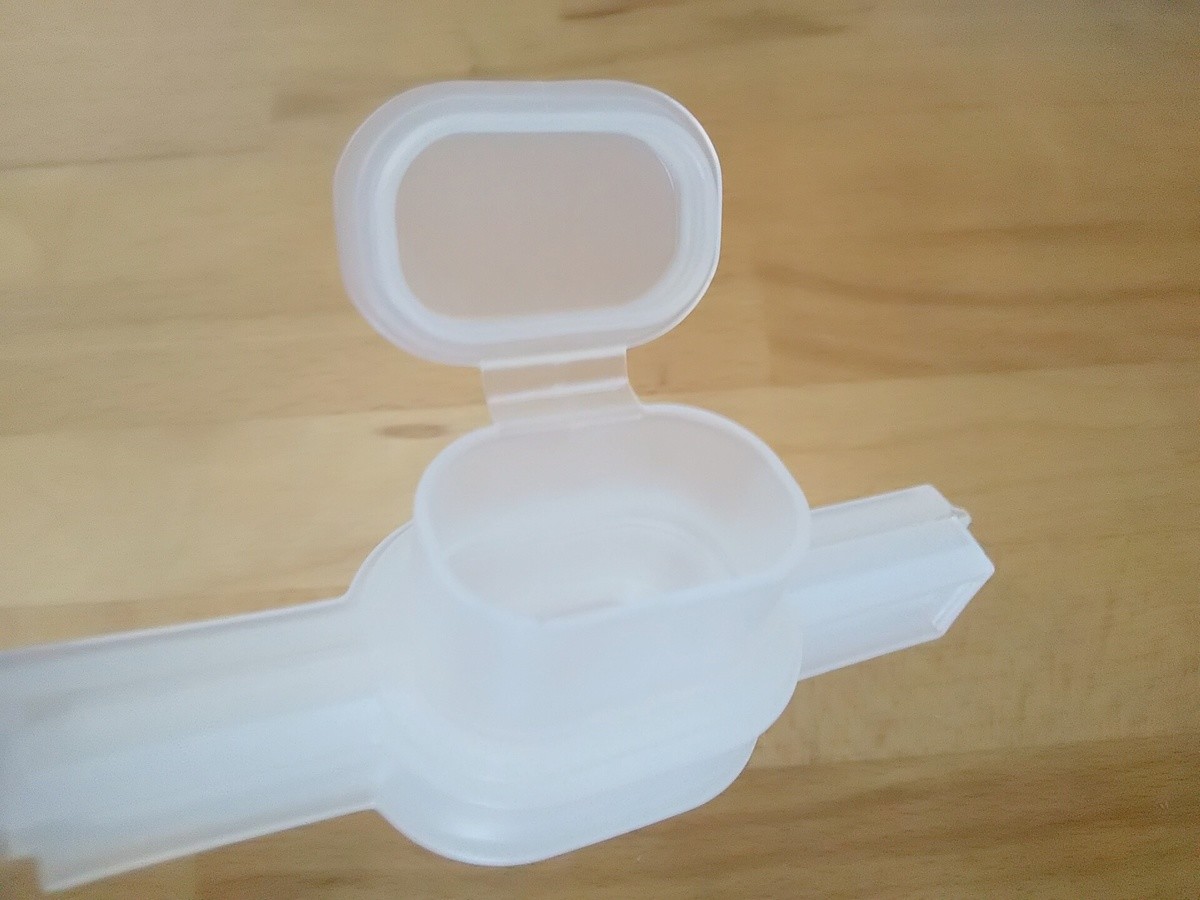 見た目はお菓子などの袋を留めるクリップに似ています。"蓋つきの袋とめクリップ"という感じです。