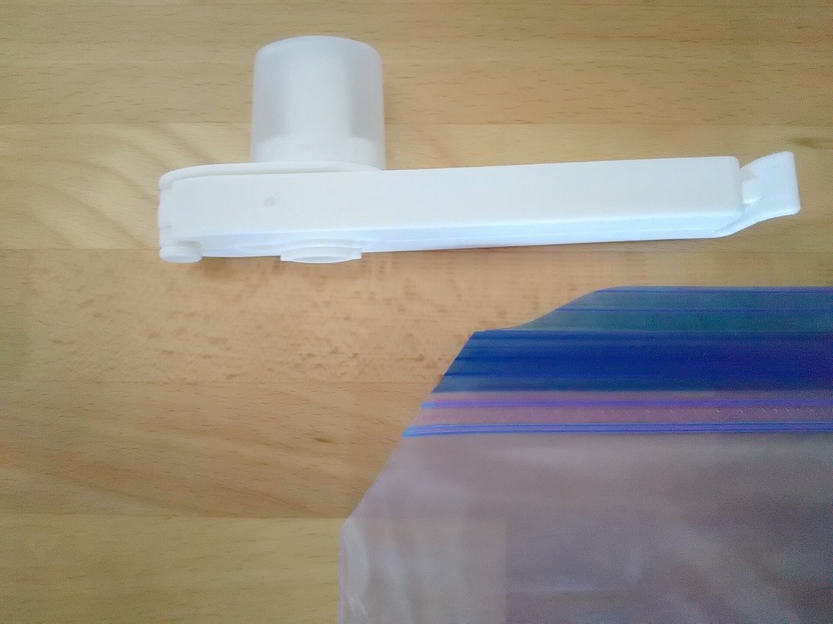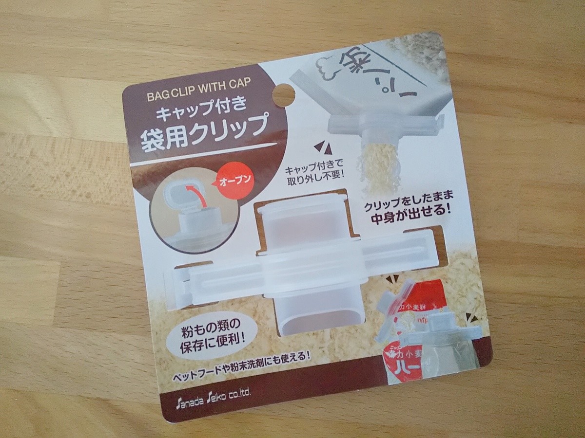 我が家には大袋タイプがないので、ジッパーバッグに袋用クリップを取り付けてみました。