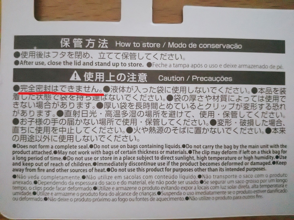 本来は、小麦粉などの粉もの食品の保存に使う商品ですが、パッケージには「ペットフードや粉末洗剤にも使える!」と記載されています。