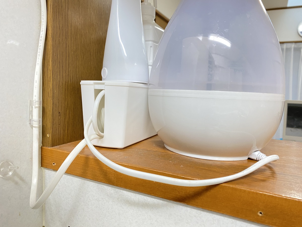 加湿器のようにオフシーズンは別の場所にしまう場合でも、ケーブルクリッパーはこのままでもOKです。ケーブルクリッパー自体が透明なので、貼り付けたままにしておいてもあまり目立ちません。