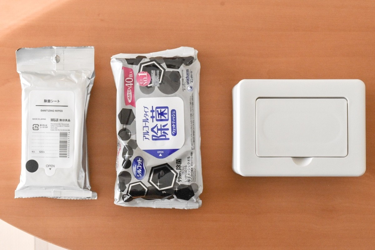 シート用ケースには無印良品の除菌シートがぴったり入りますが、市販の除菌シートも入ります。