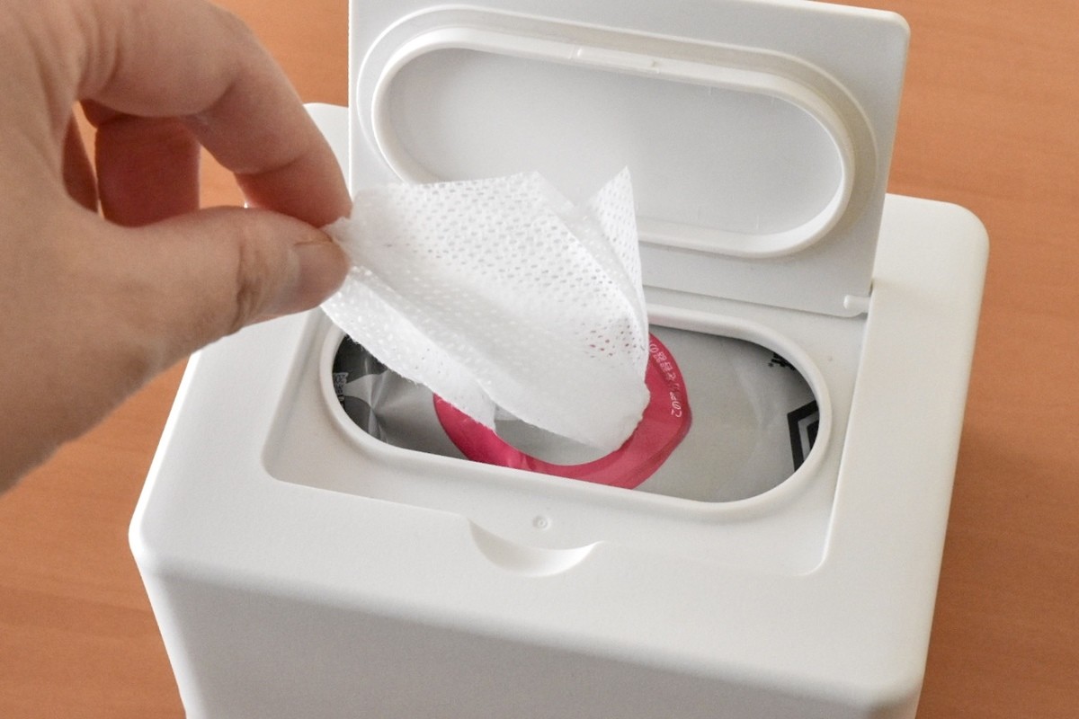 蓋がカチッと閉まるのでシートが乾燥しにくく、子供でも開けやすいのでおすすめです。