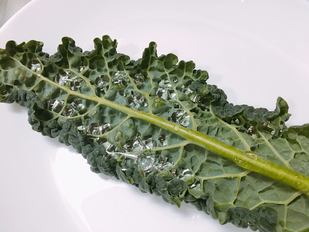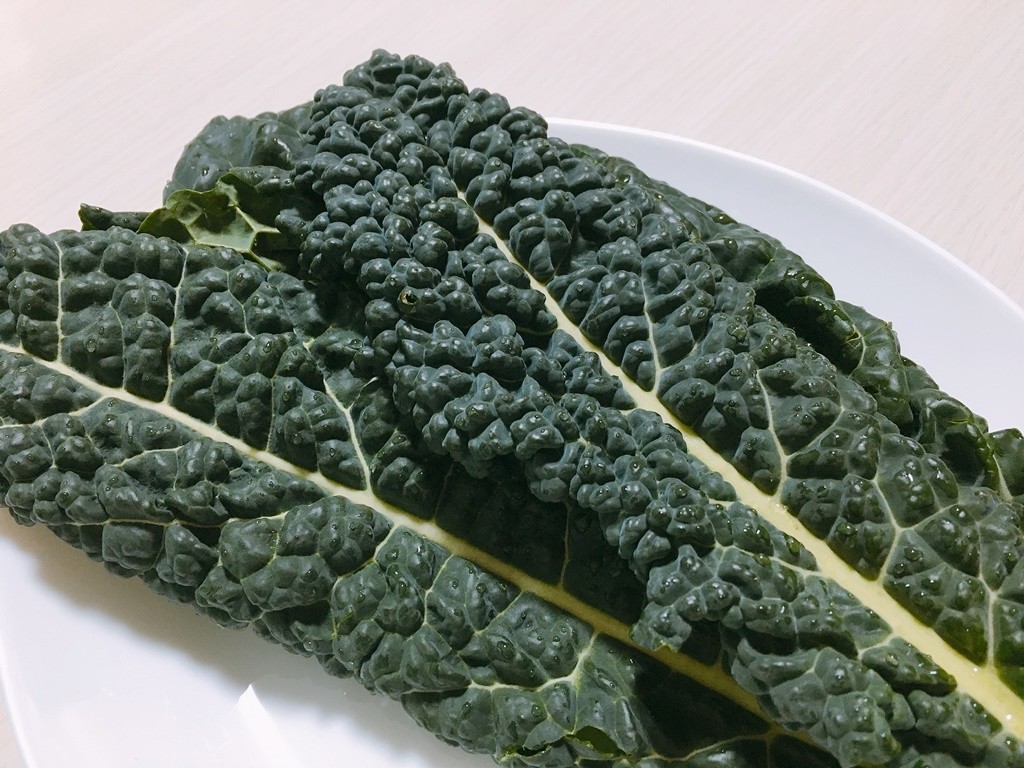 味付けは塩・こしょう・バターのみ。カーボロネロの芯は固いそうなので、今回は真ん中の大きな芯は切って除きました。
