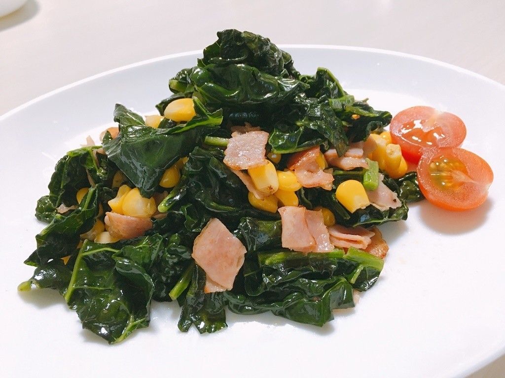 居酒屋メニューでもおなじみの、ほうれん草のコーンバターにヒントを得て、カーボロネロのコーンバター炒めを作ってみました。