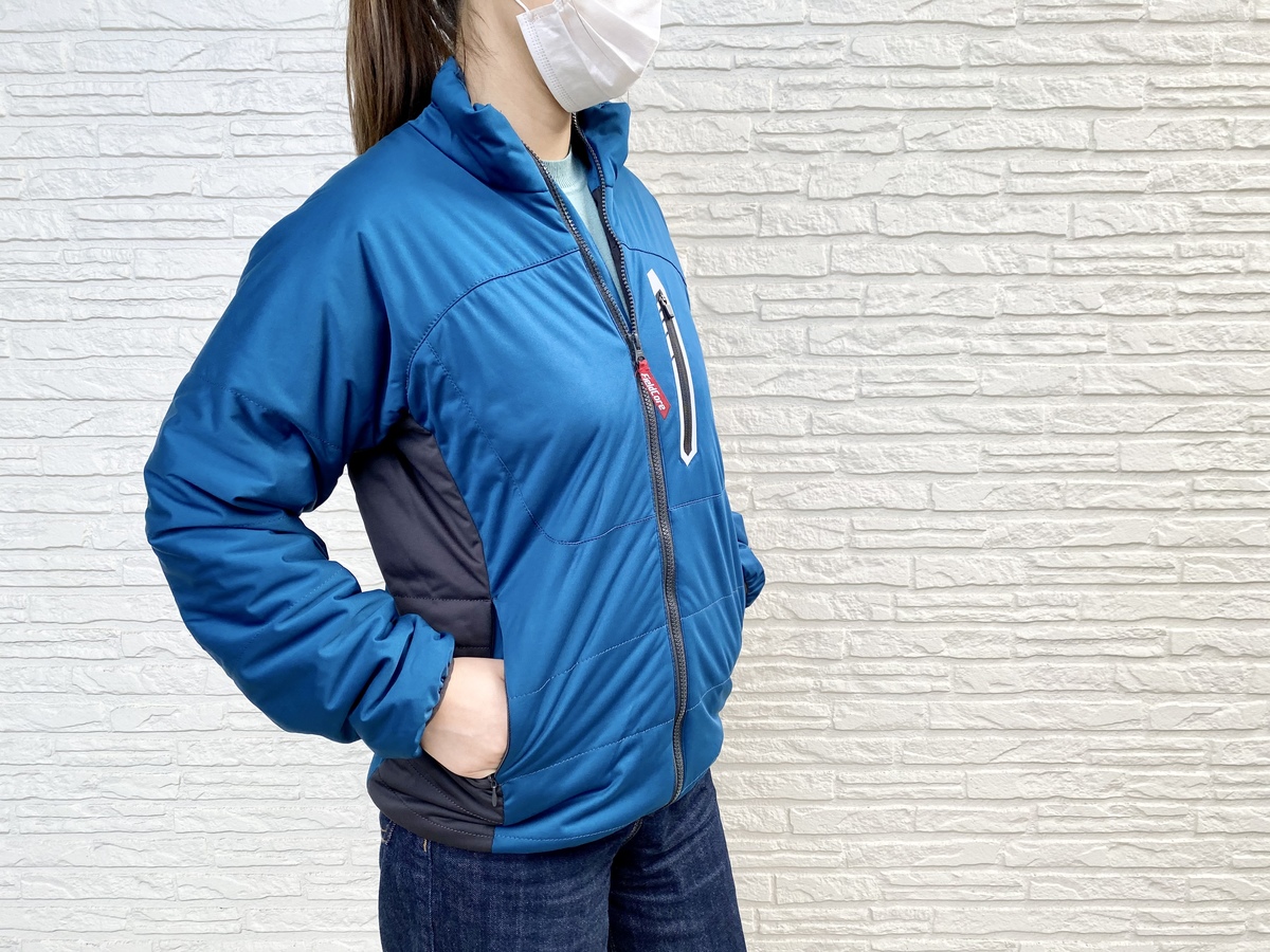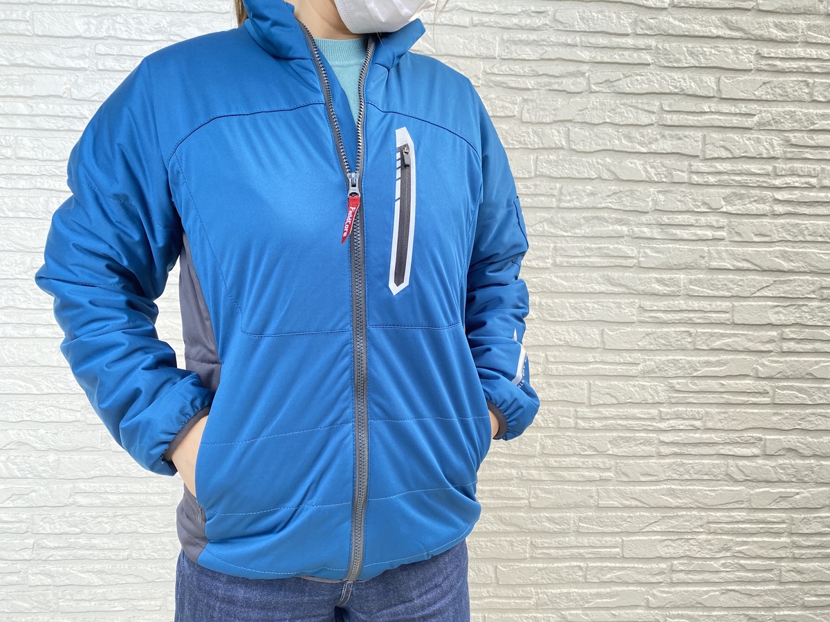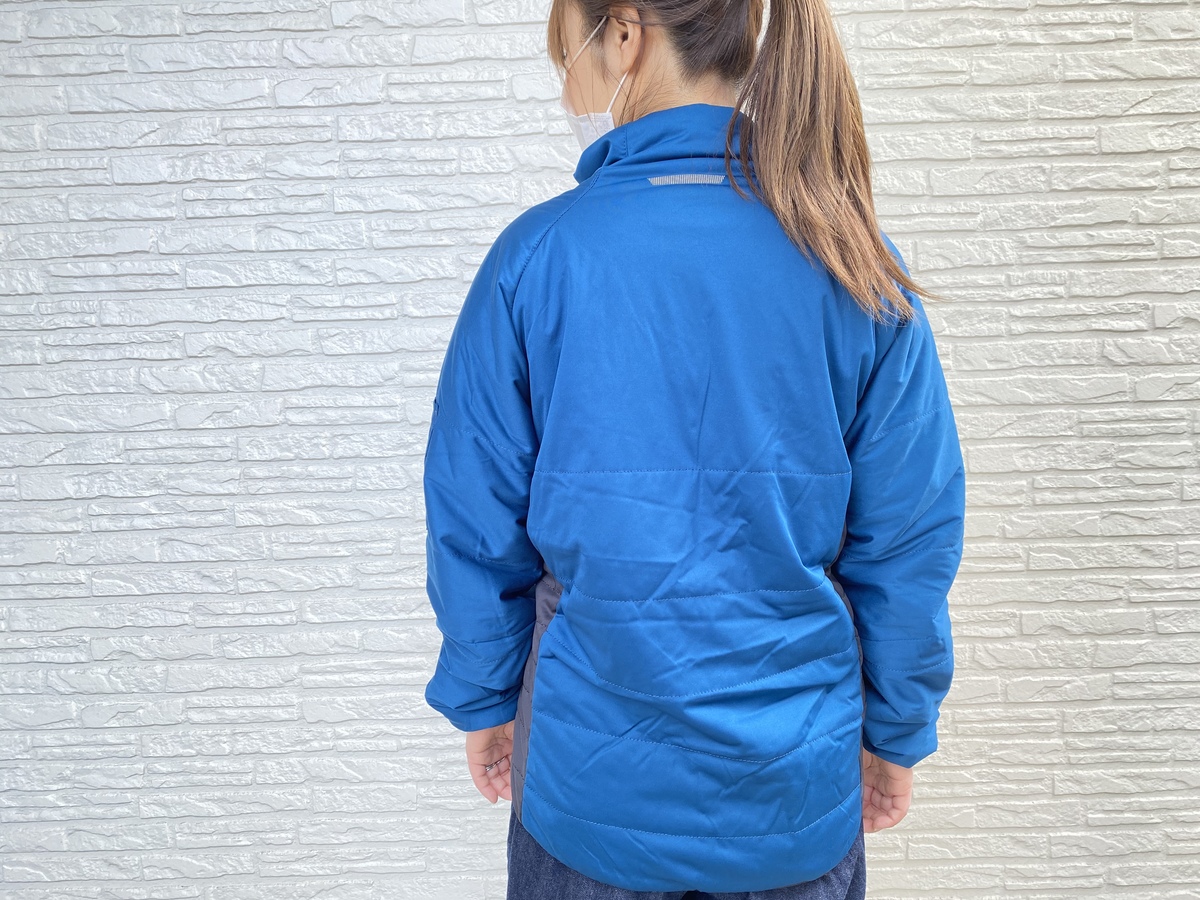 ■機能:制電抑制加工済み、防風、はっ水、ストレッチ、軽量、中わた調整、ムービングポケット、腕の上げ下げ楽々、反射材つき