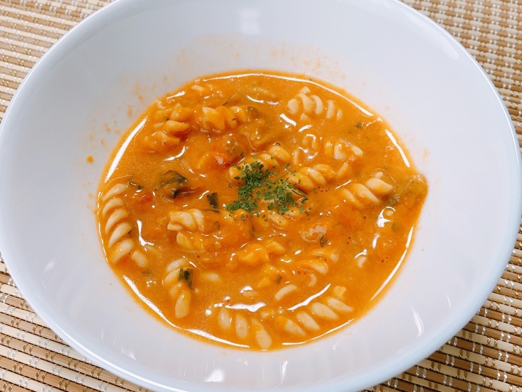 トマトソースに生クリームとチーズを合わせた濃厚ソースが絶品でした。パンやサラダを合わせると立派な朝食の出来上がりです。