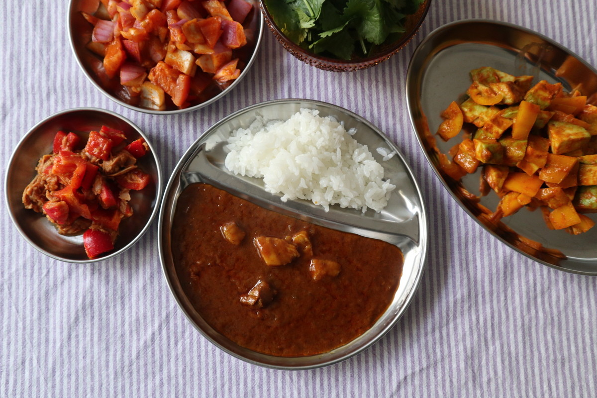 これまたカルディで売っている超絶美味しい“ビンダルーカレー”というカレーと食べれば、食卓が異国に!