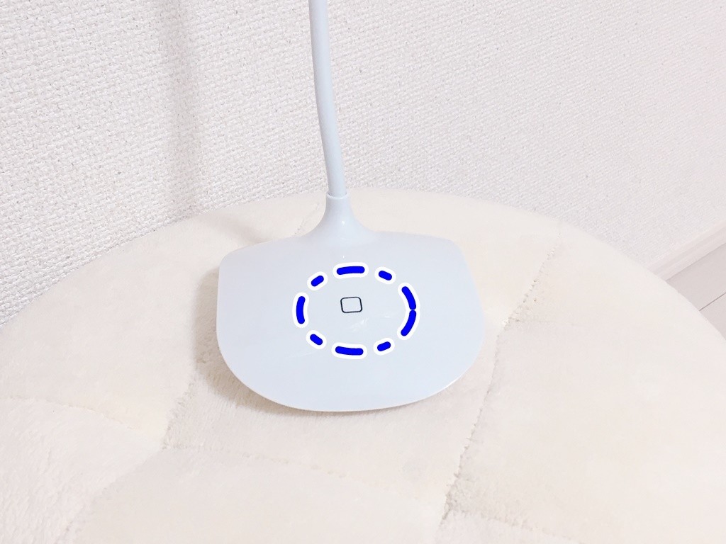 こちらのスタンドライト、スイッチは本体のこの部分。明るさは3段階で調節できます。