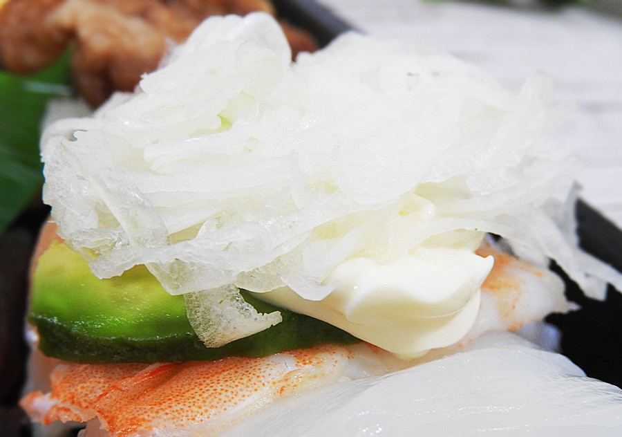 持ち帰りして時間が経ったせいなのかもしれませんが、アボガド上に乗っている生たまねぎの苦みが強めに出ていて、私の口には合いませんでした。