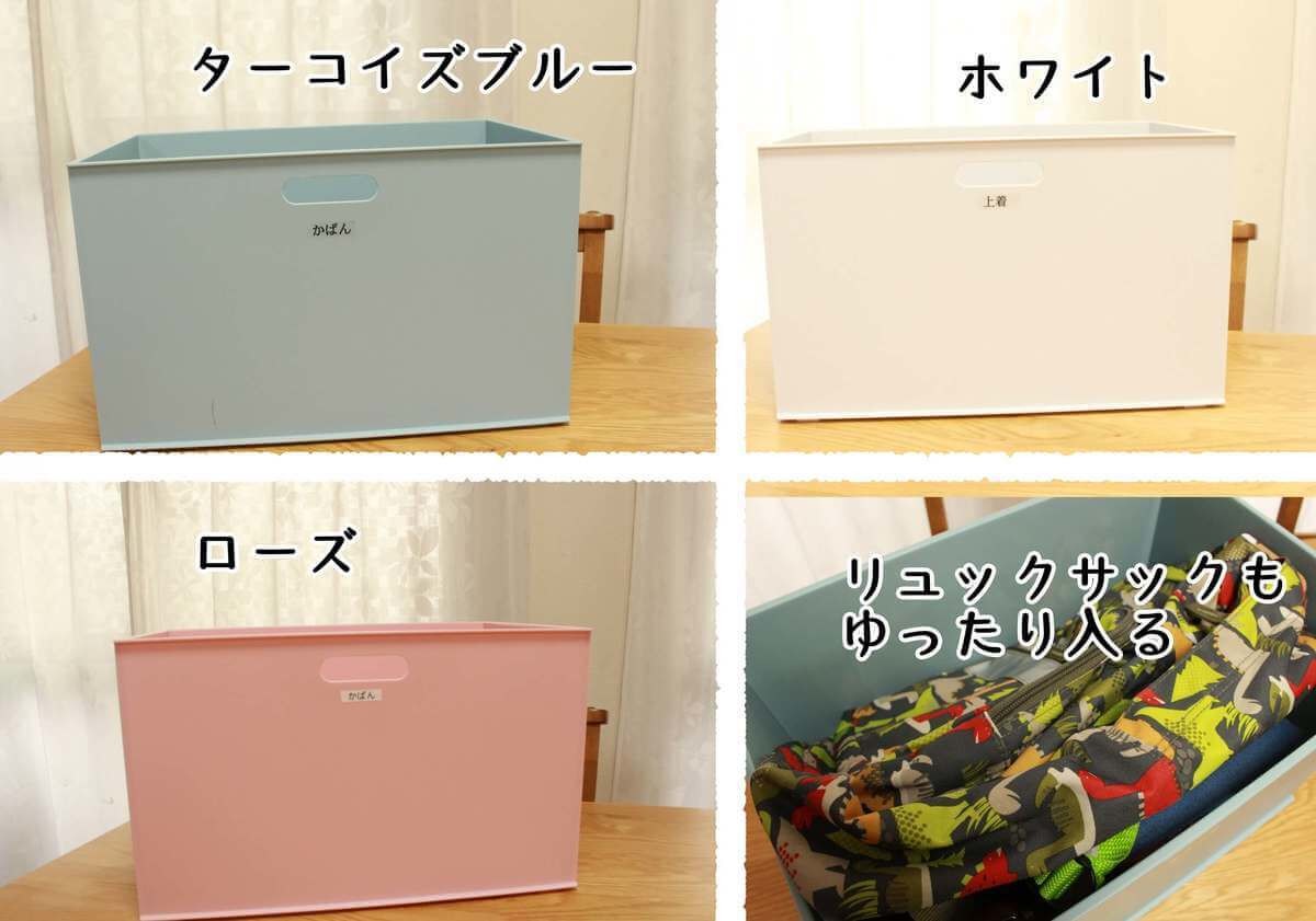 5色あり、淡い色なのでカラーボックスと違う色のボックスを選んでもバランスよくまとまります。