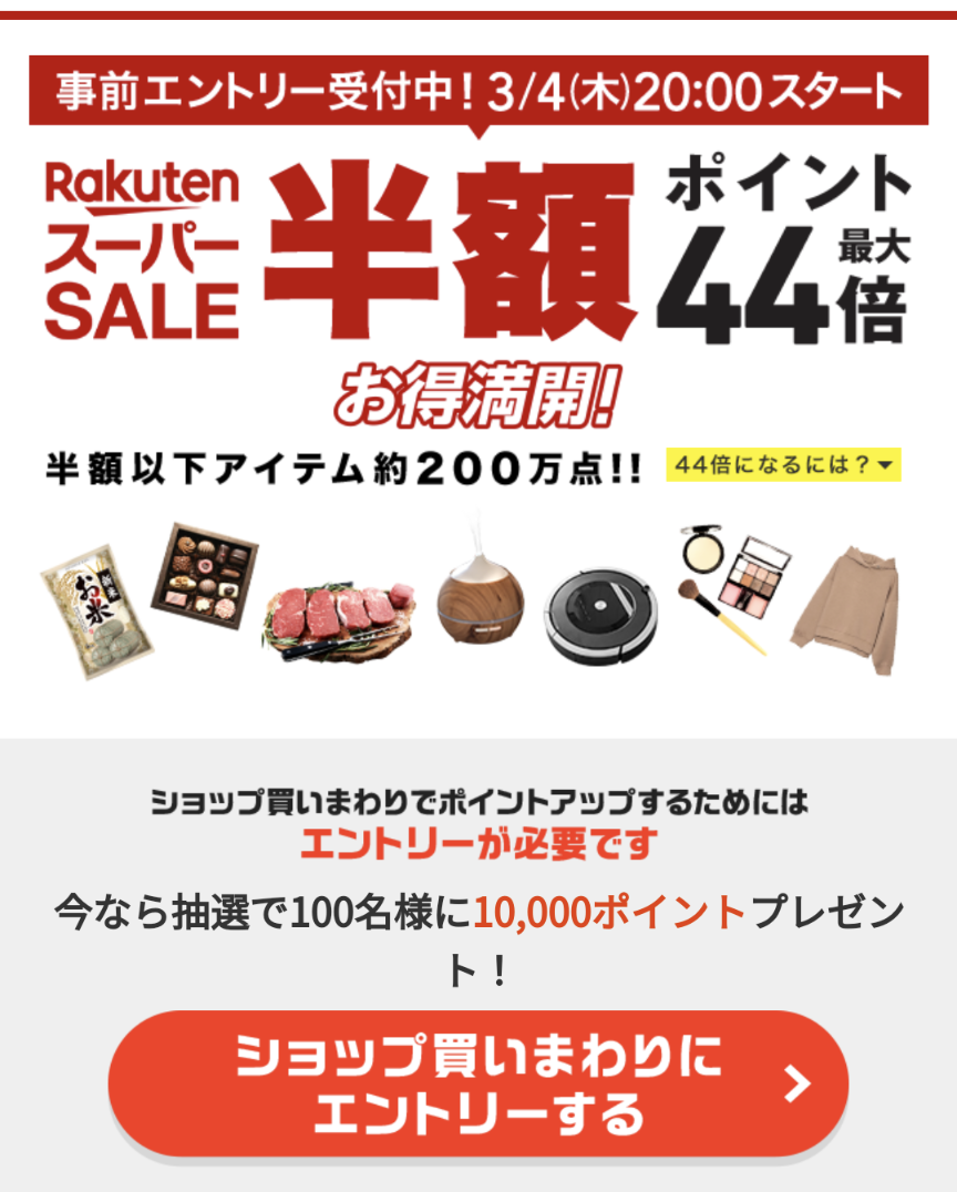 2021年3月4日20:00から楽天スーパーセールがスタートします!