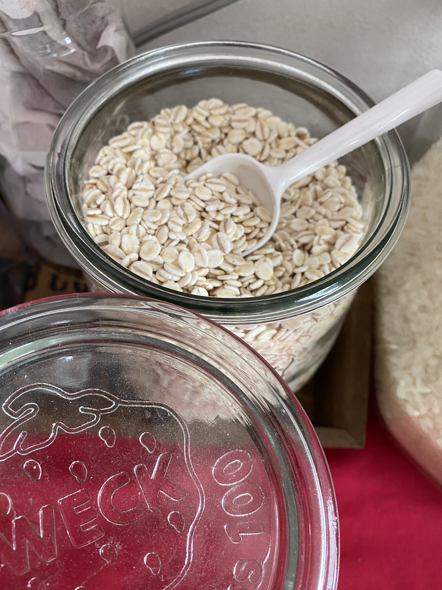 わが家では、ごはんを炊く際にいつも麦を入れているので、そのガラス容器に入れて使っています。