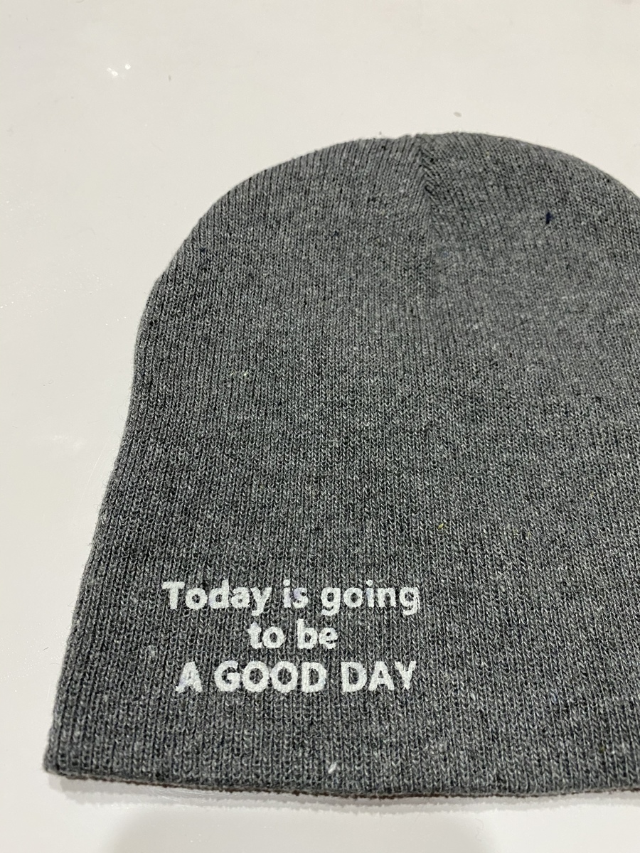 主人がよく庭で作業をするので、その際にニット帽をかぶって風よけにするらしいです。