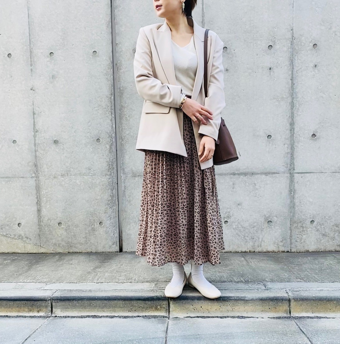 ベージュといってもブラウンやレオパード柄も取り入れると挑戦しやすいです。
