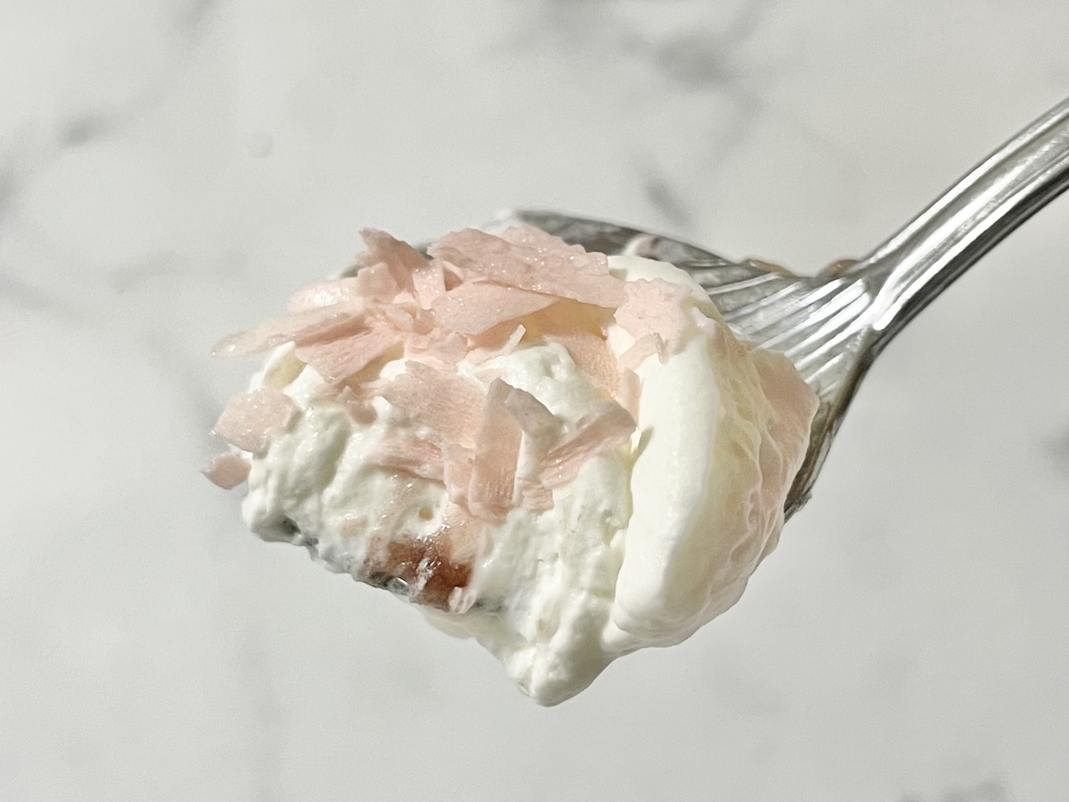 ここに粒あんとホイップクリームを混ぜるとまるで桜餅のような味になりました。