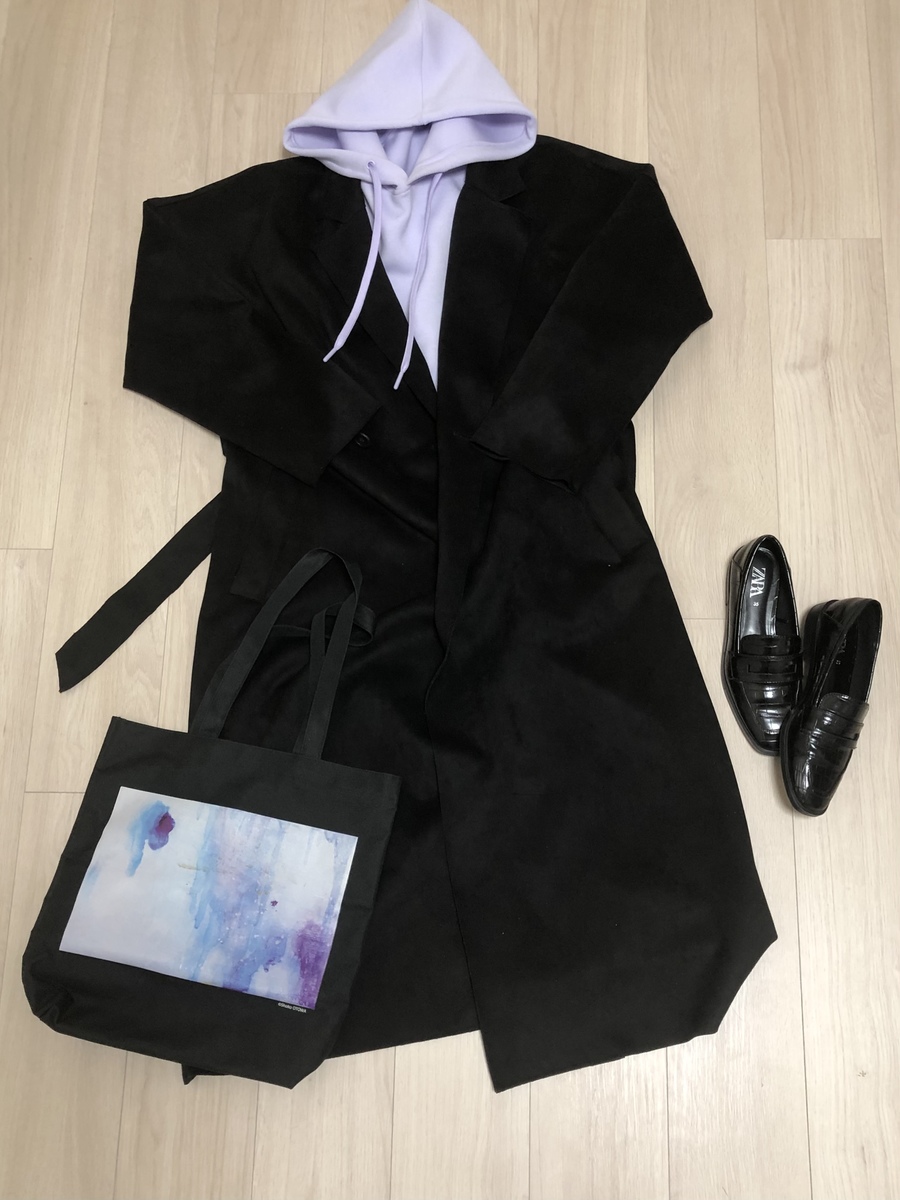 4月はお花見シーズンですが、例年、意外と肌寒い日も多いですよね。ただしコーデに少しずつ春をとりいれたい時期。黒や紺のアウターから、ラベンダーカラーのフードを覗かせるだけで春っぽさと抜け感がでて、華やかになりますよ。